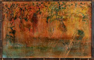 acrilico su tela, Largh. 106 - Alt. 86 Cm 1995 datato e firmato al retro