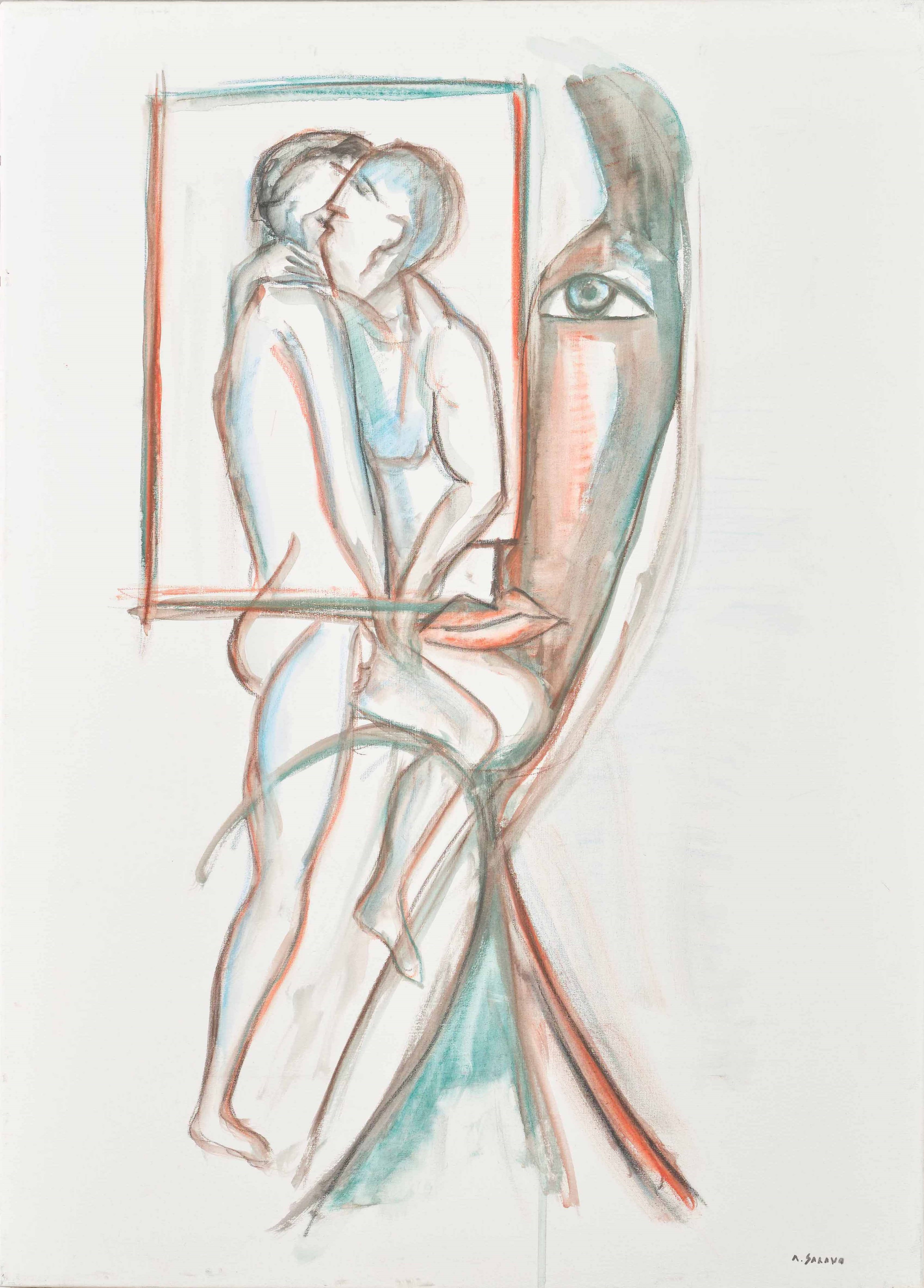 acquerello su tela, Largh. 50 - Alt. 70 cm