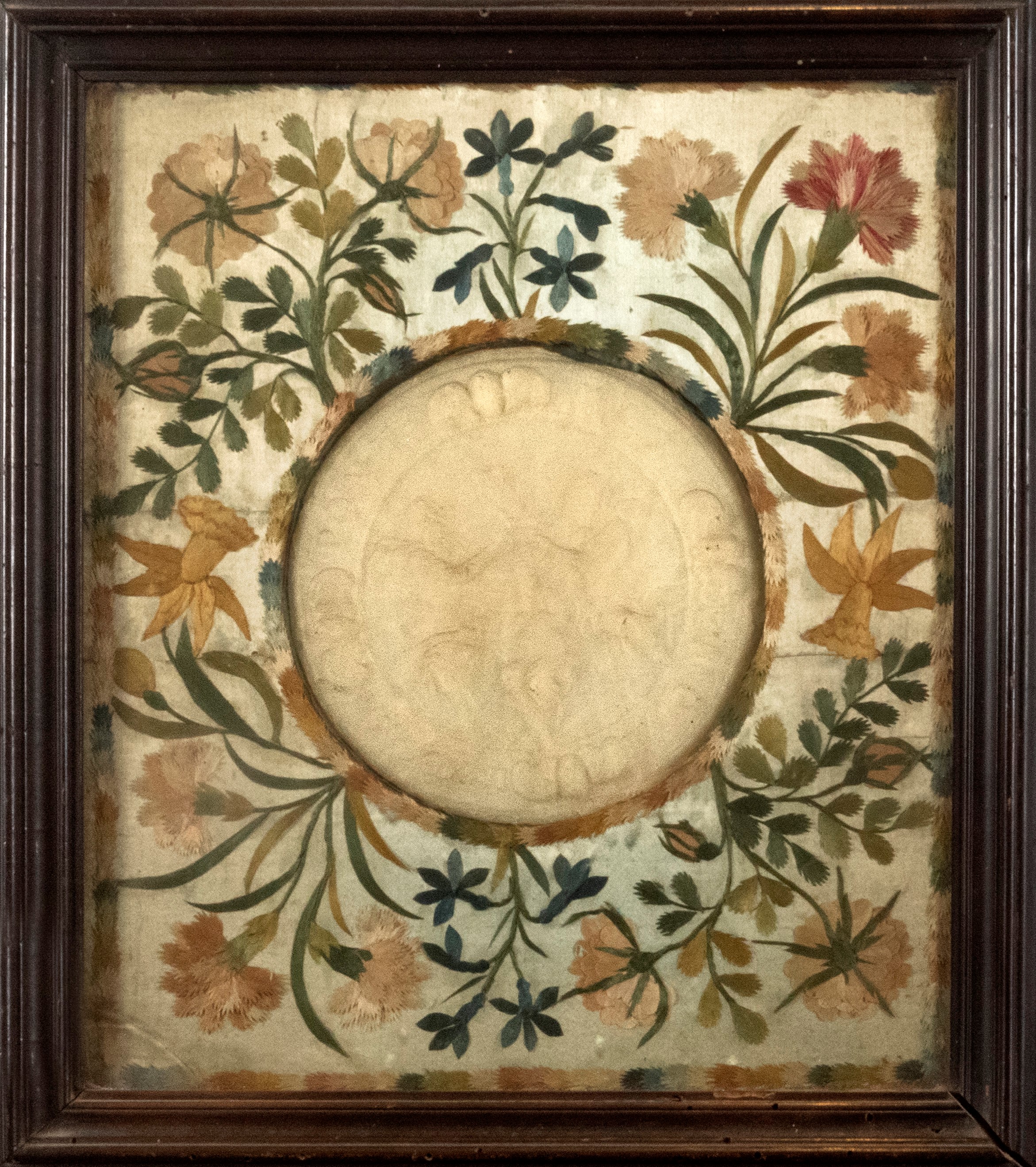 Bassorilievo in cera raffigurante Incoronazione della Vergine, entro passepartout [..]