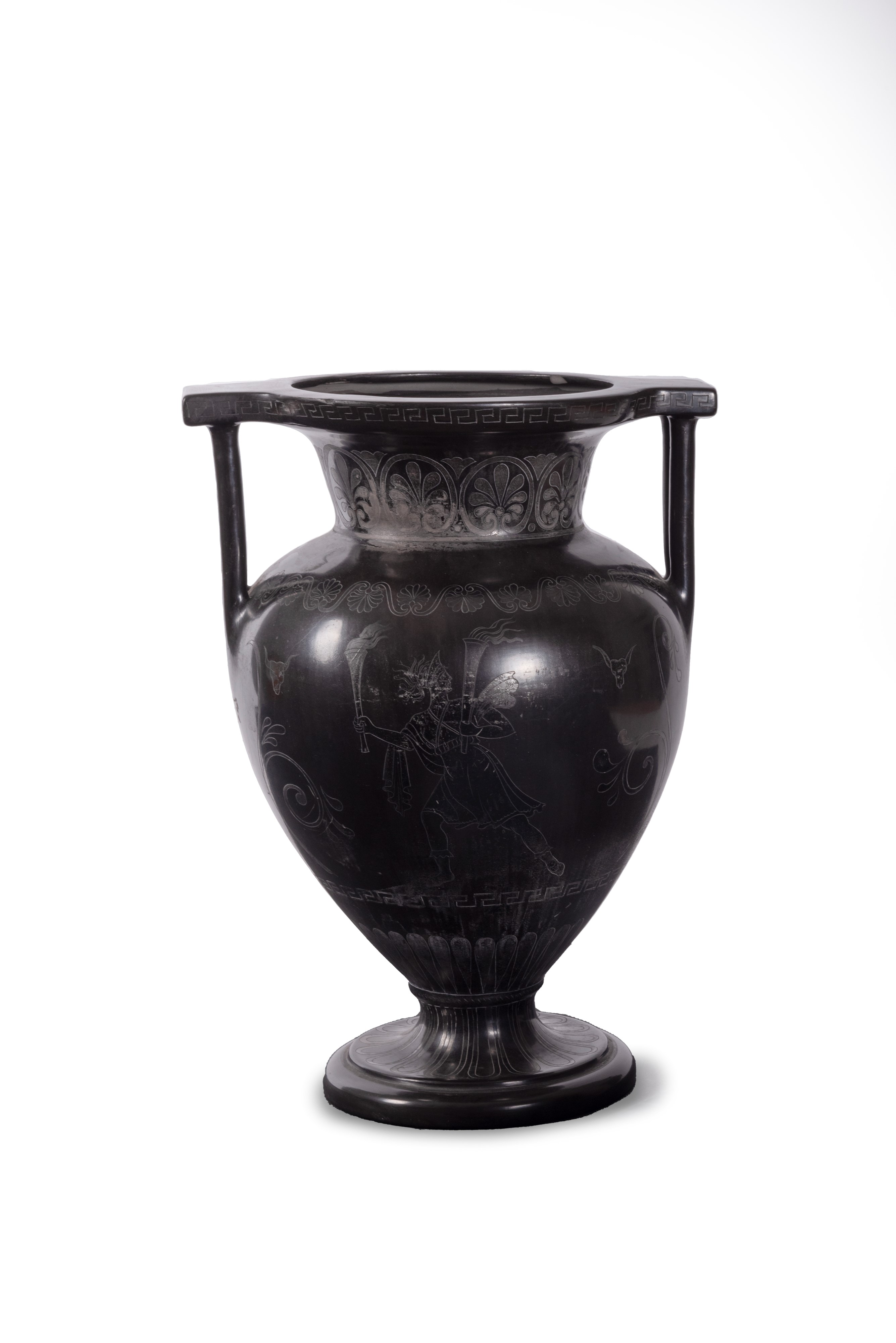 Cratere in terracotta smaltata nera, fine secolo XIX - inizi secolo XX