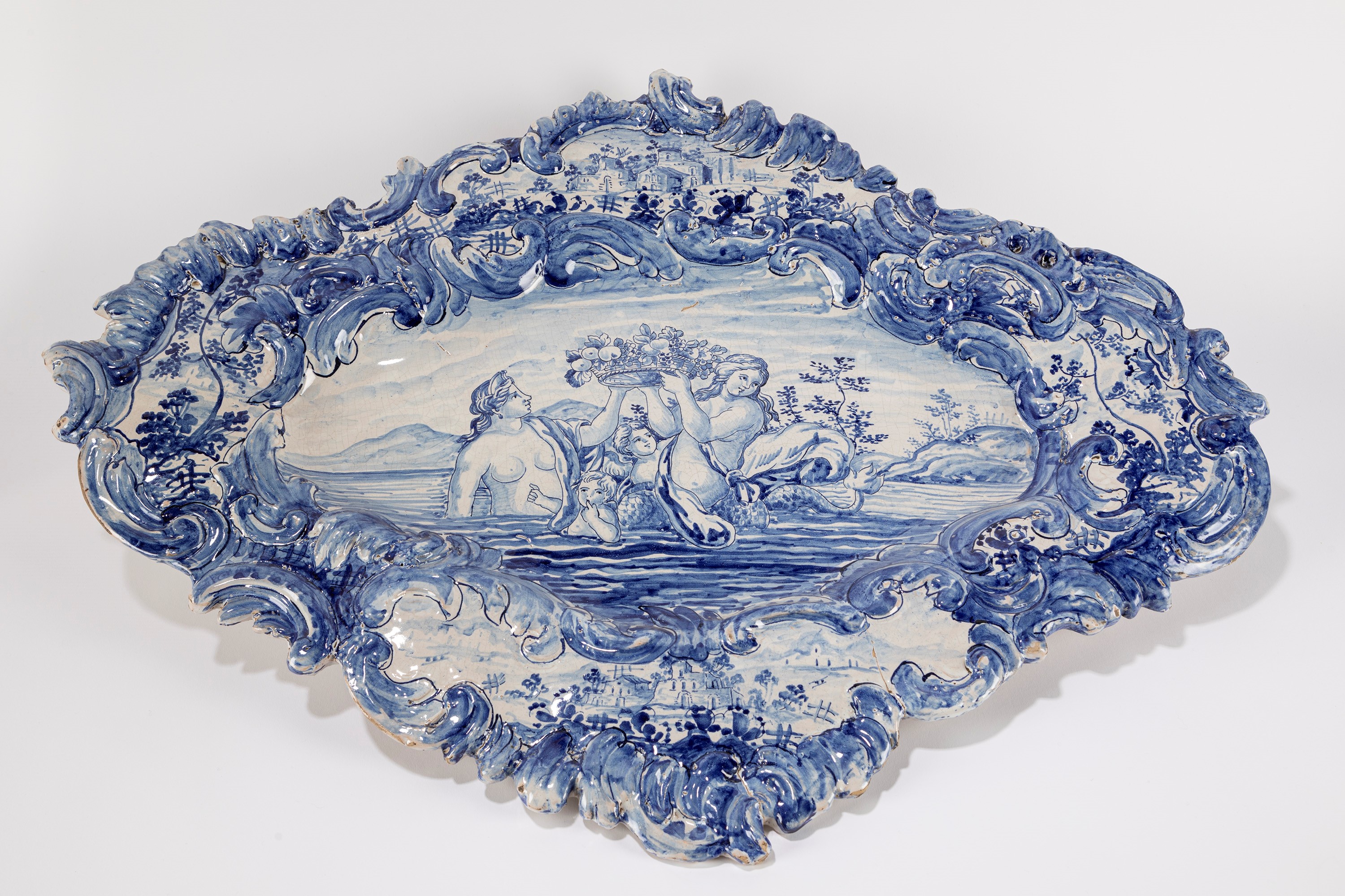 Due piatti in ceramica bianca e blu nello stile di Albissola, secolo XX