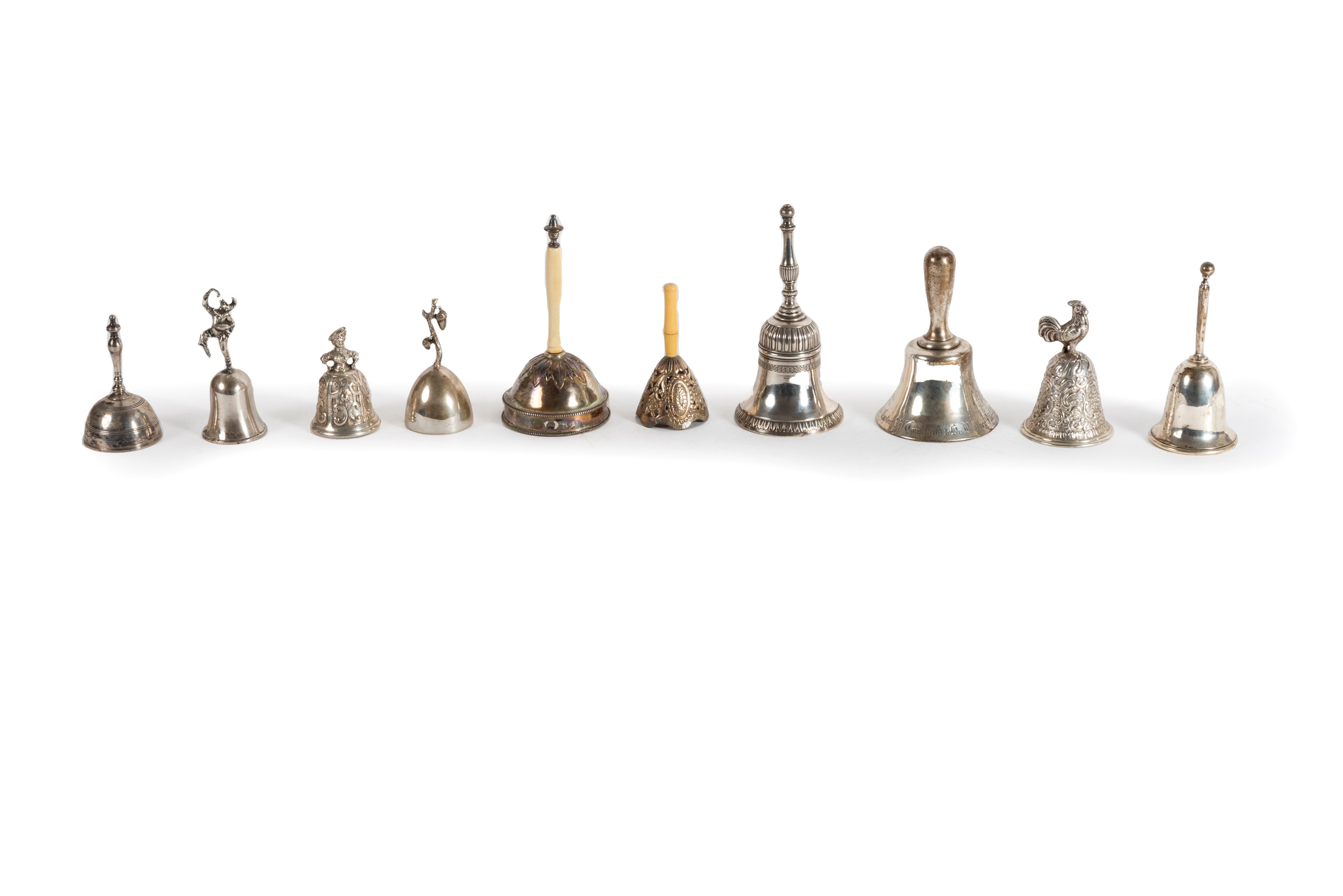Lotto composto da dieci campanelli in argento, secoli XIX - XX
