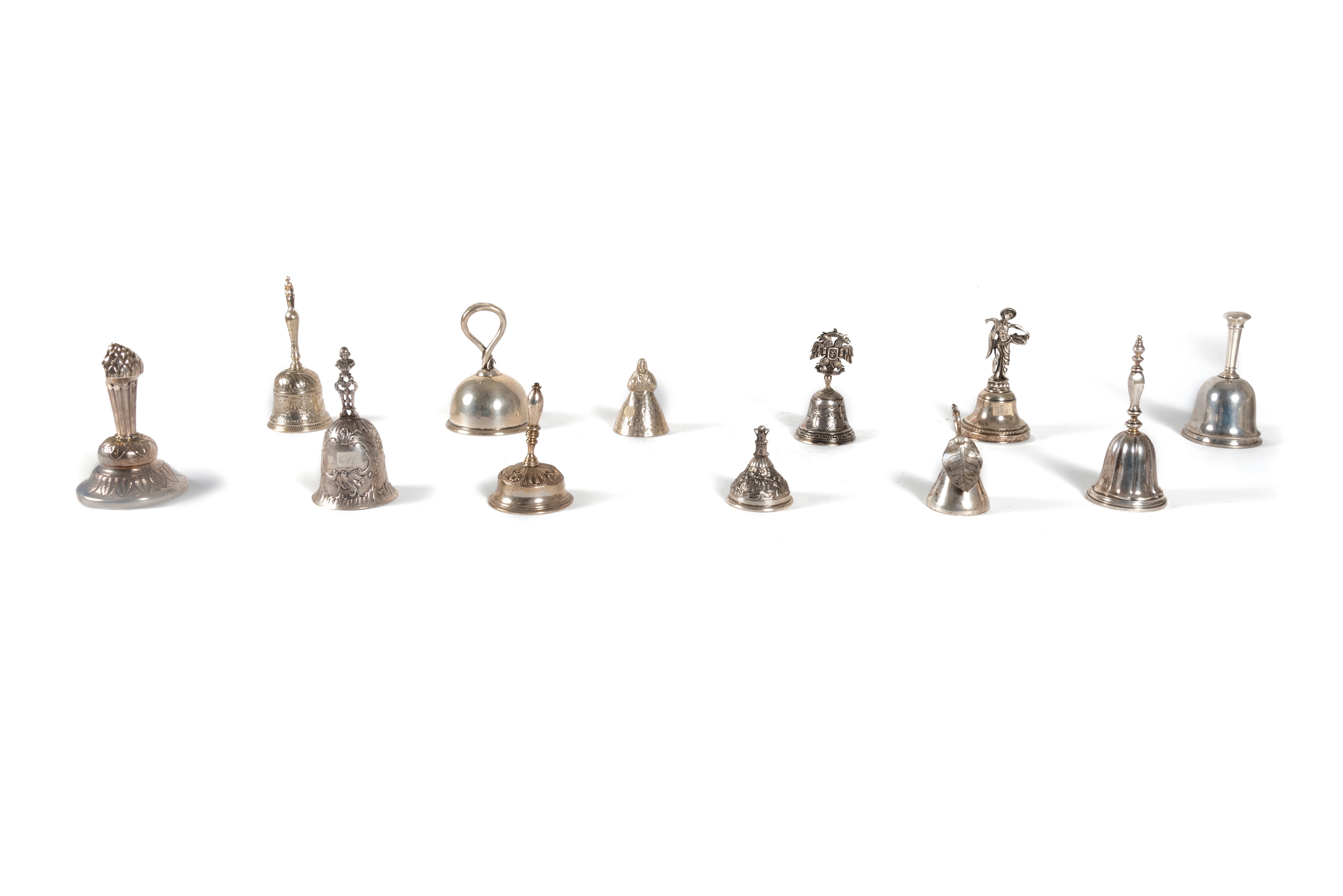 Lotto composto da dodici campanelli in argento di epoche varie