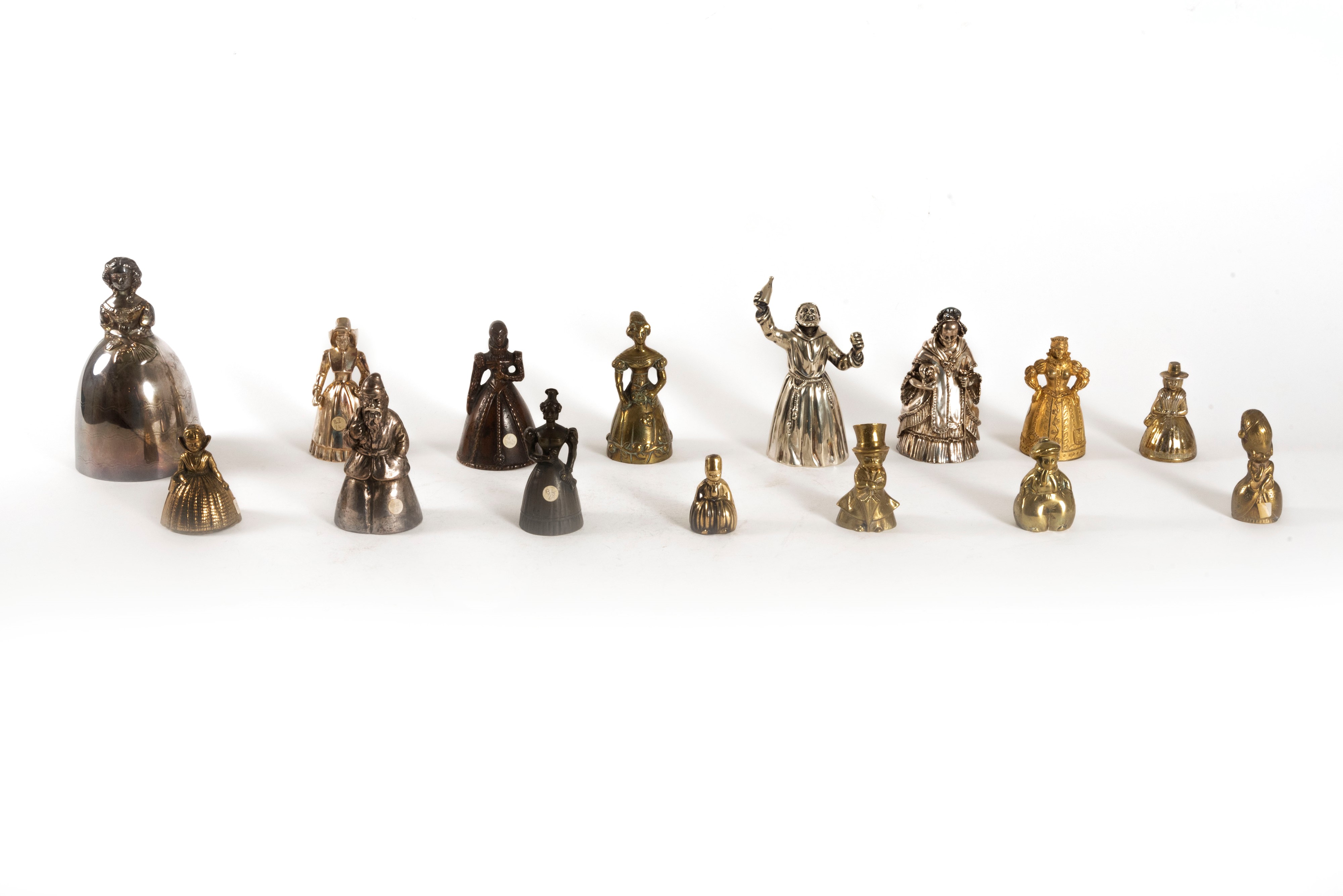 Lotto composto da quattordici campanelli in bronzo dorato e argentato, secolo XX