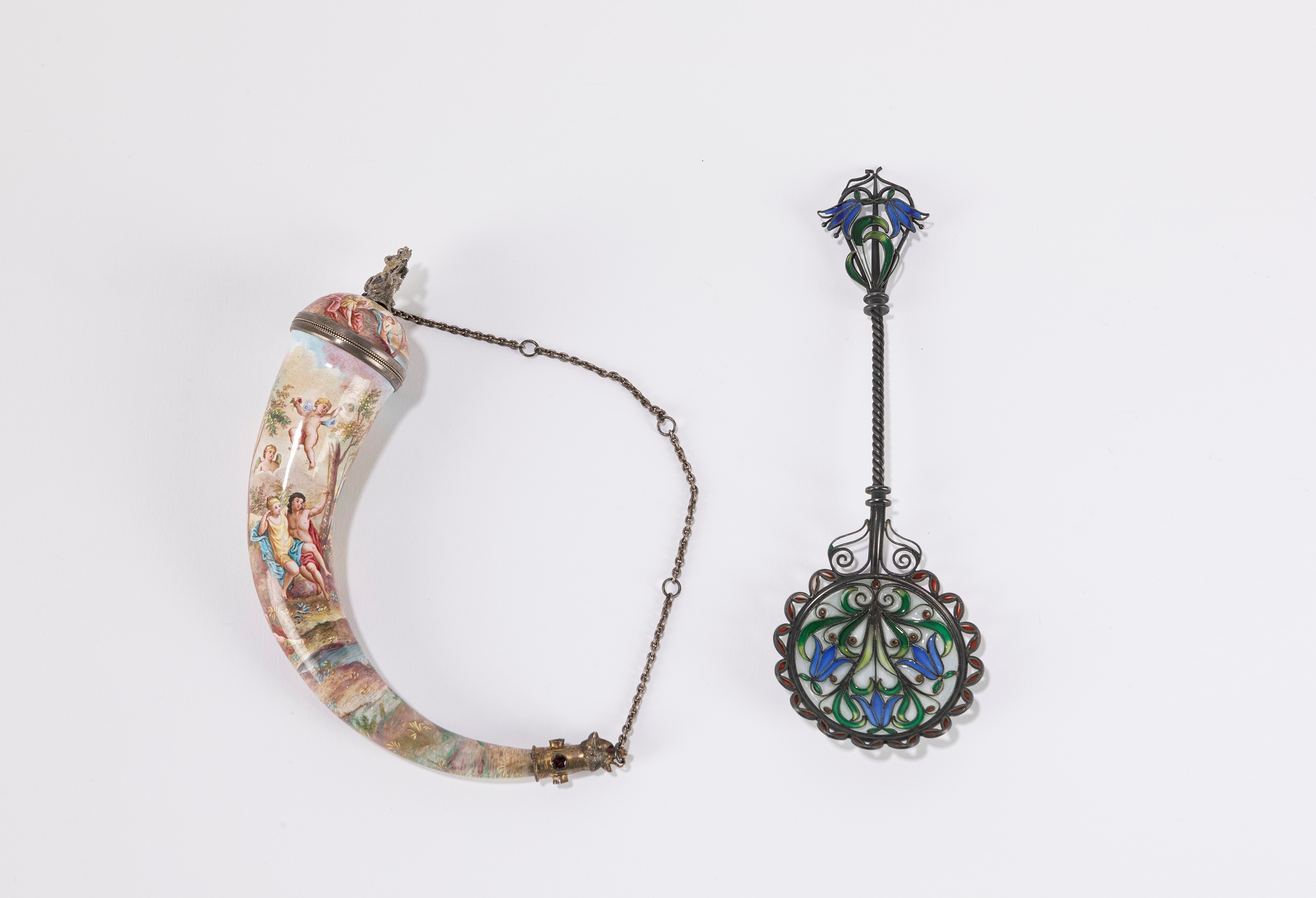 Lotto composto da una cornucopia in smalto, Austria secolo XIX; e un cucchiaino [..]