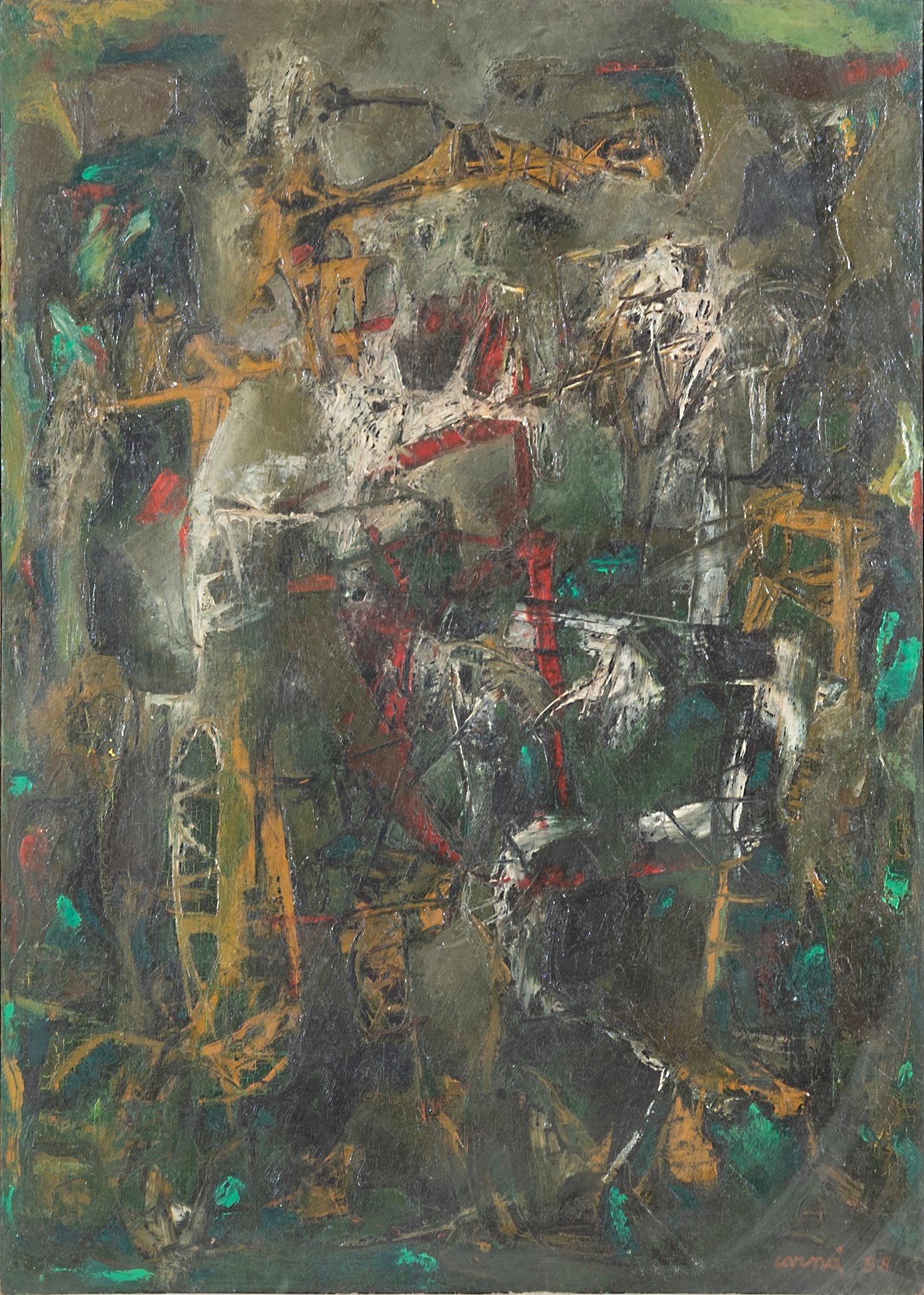 1958 firma e data in basso a destra, firma data e titolo al retro