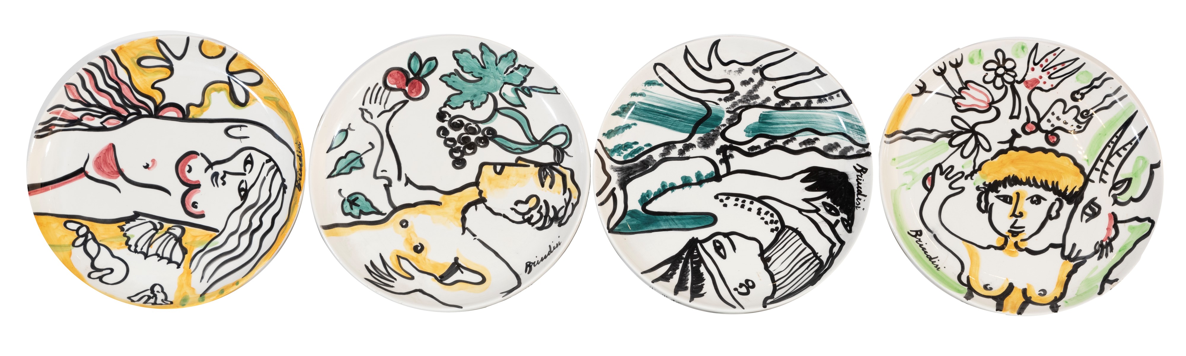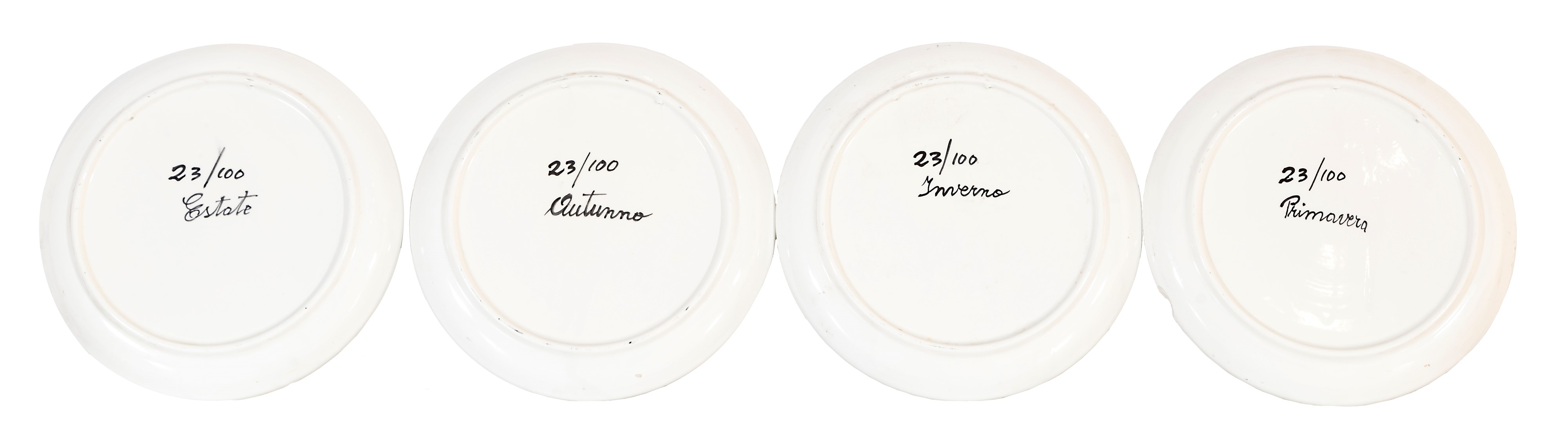 lotto di 4 piatti in ceramica smaltati es. 23/100, diam. cm. 24 cad.