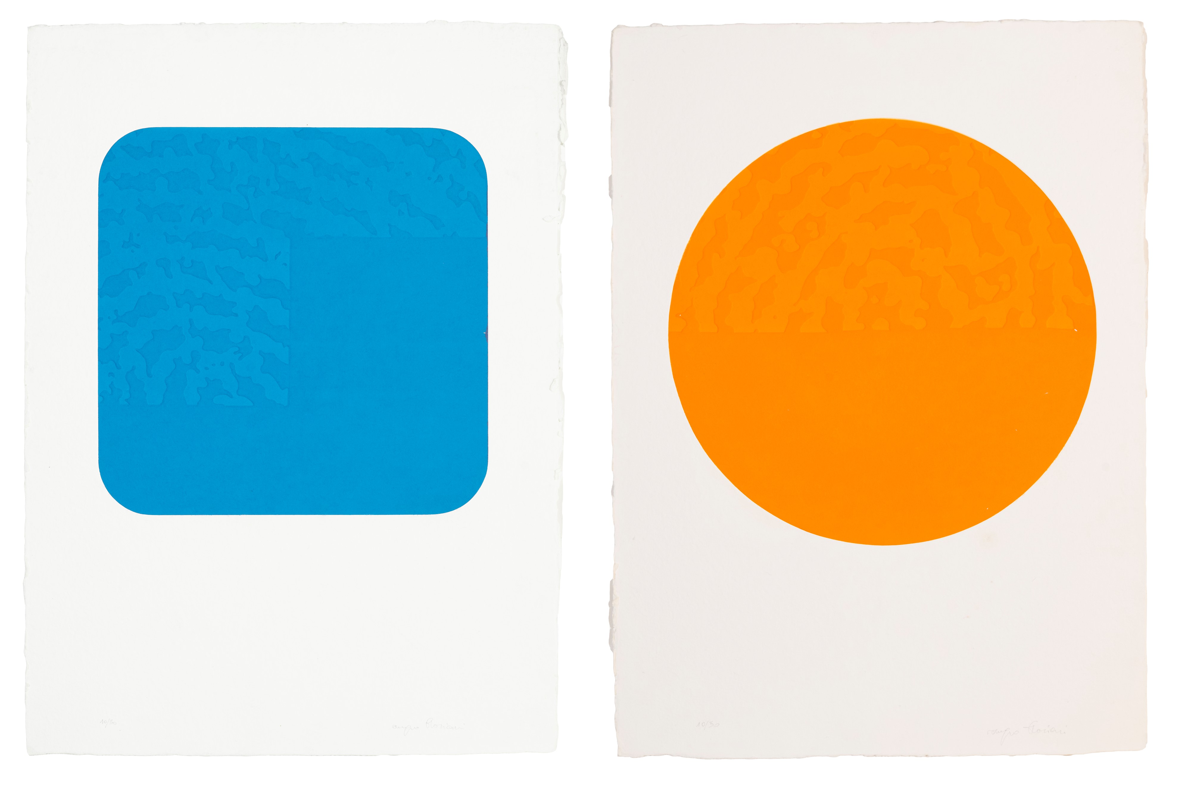 cartella contenente 2 acquetinte in rilievo su carta a mano es. 10/50, cm. 78x57 cad.