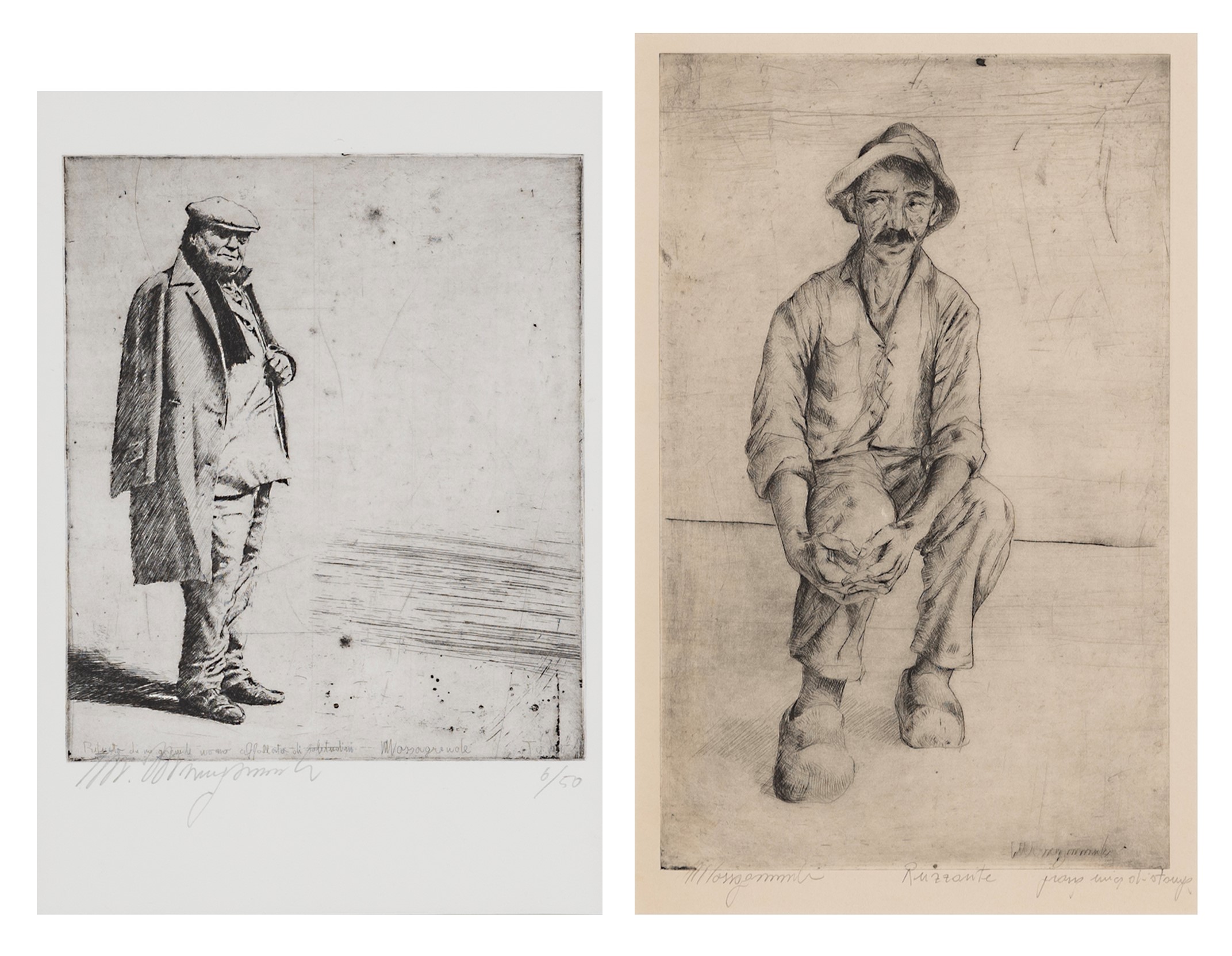 lotto di 2 acqueforti, cm. 23x20 - 33x21 (lastre)