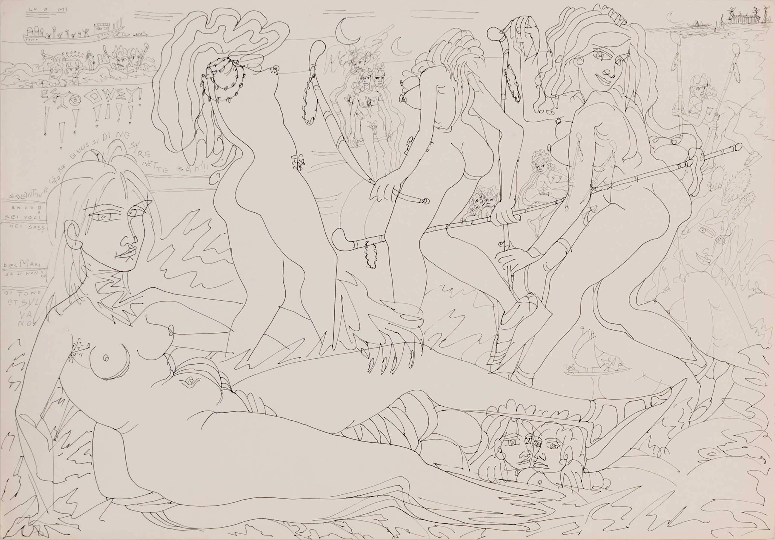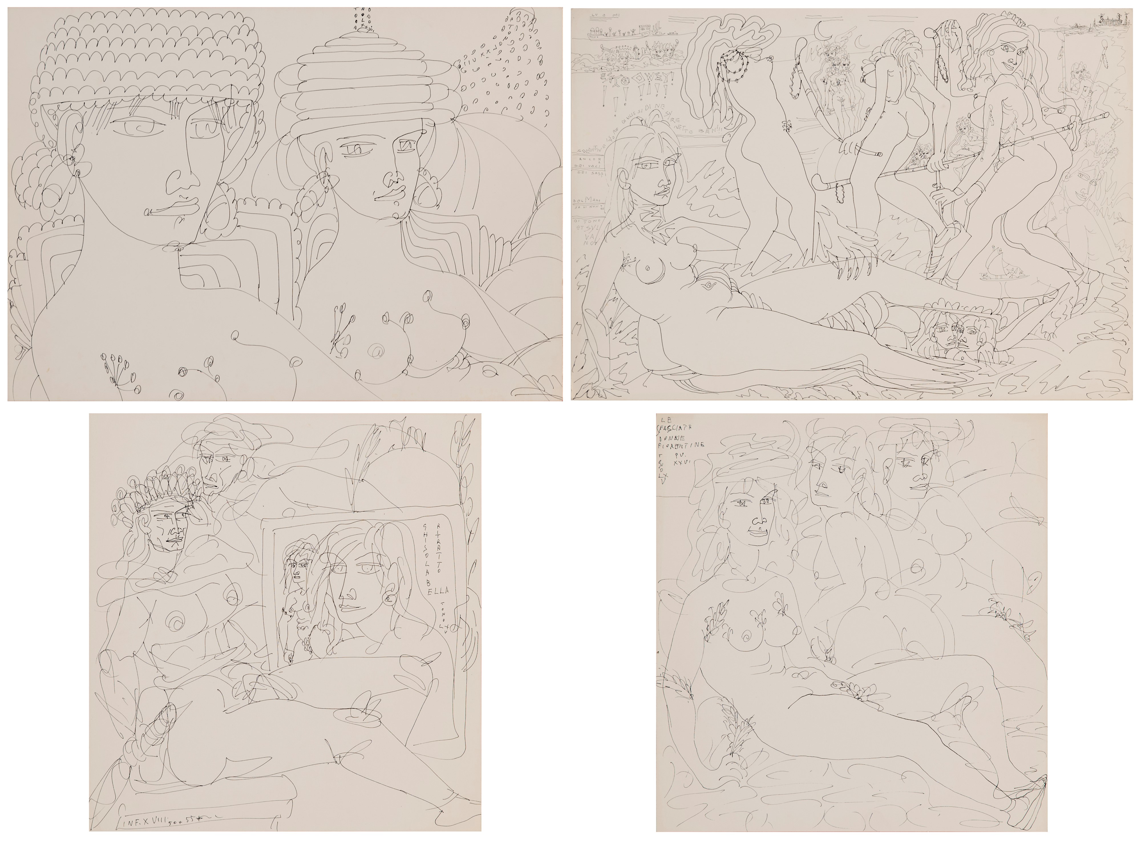 lotto di 4 disegni su carta, cm.35x50 e cm.37x35