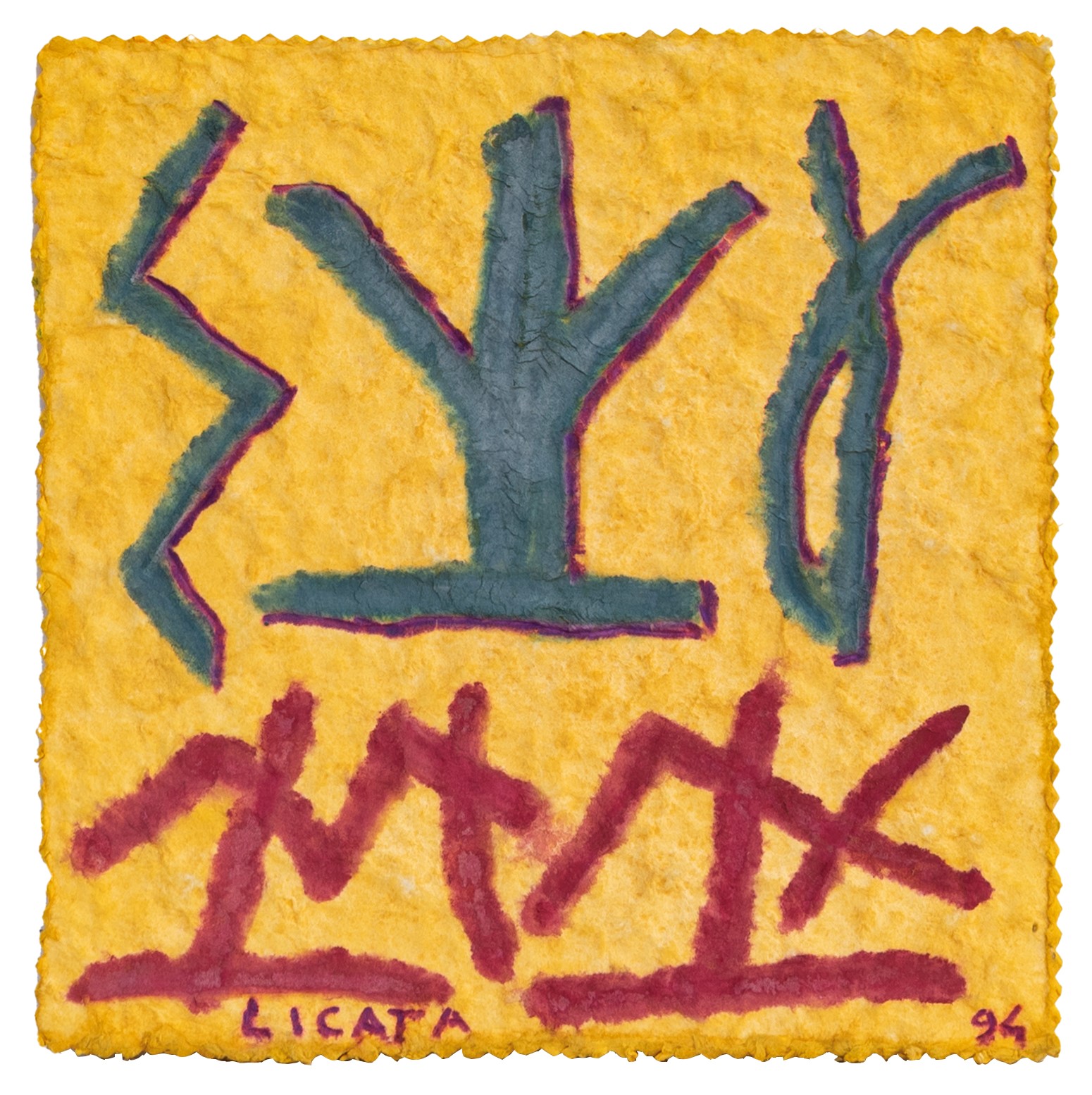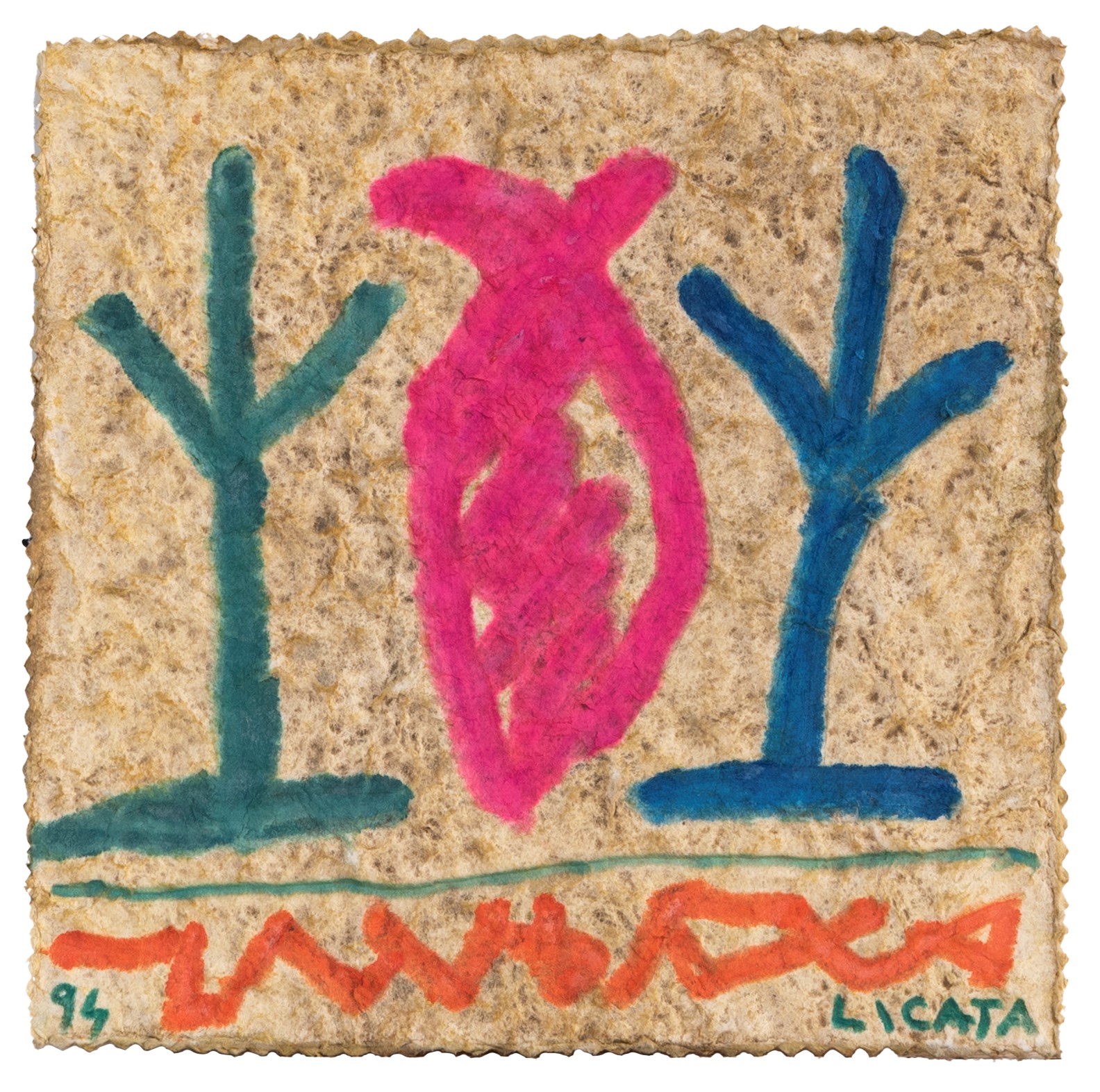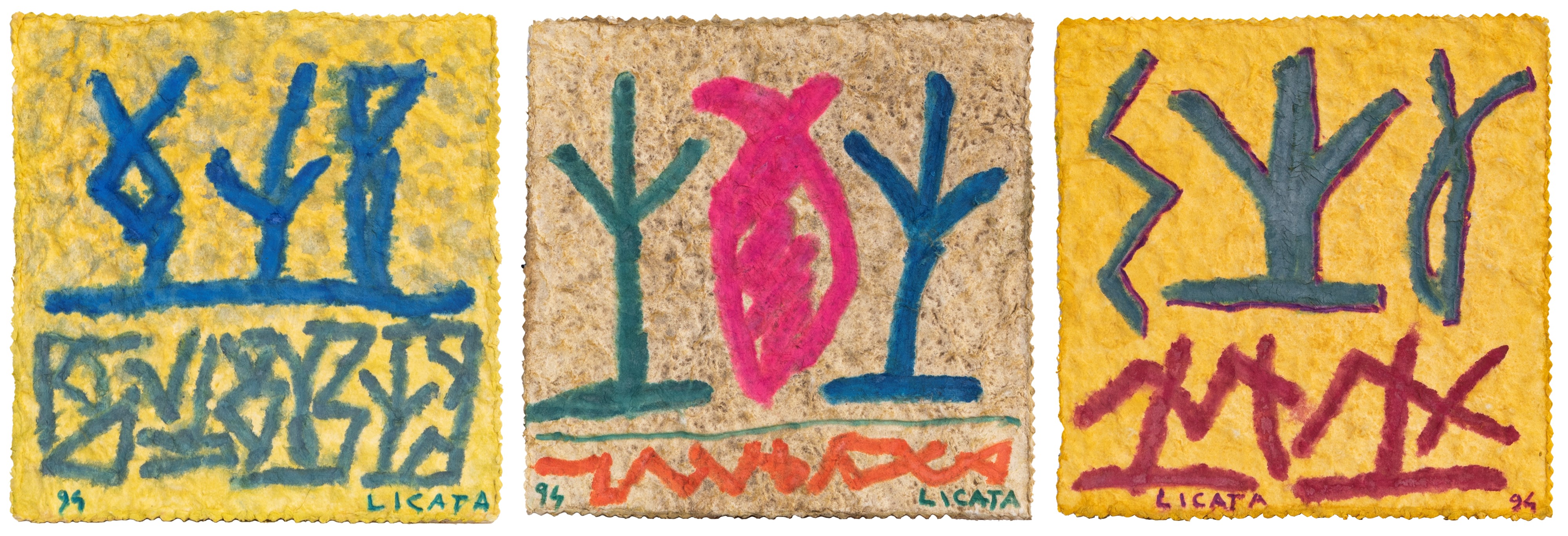 lotto di 3 tecniche miste su carta a mano, cm. 19,5x19,5 cad.