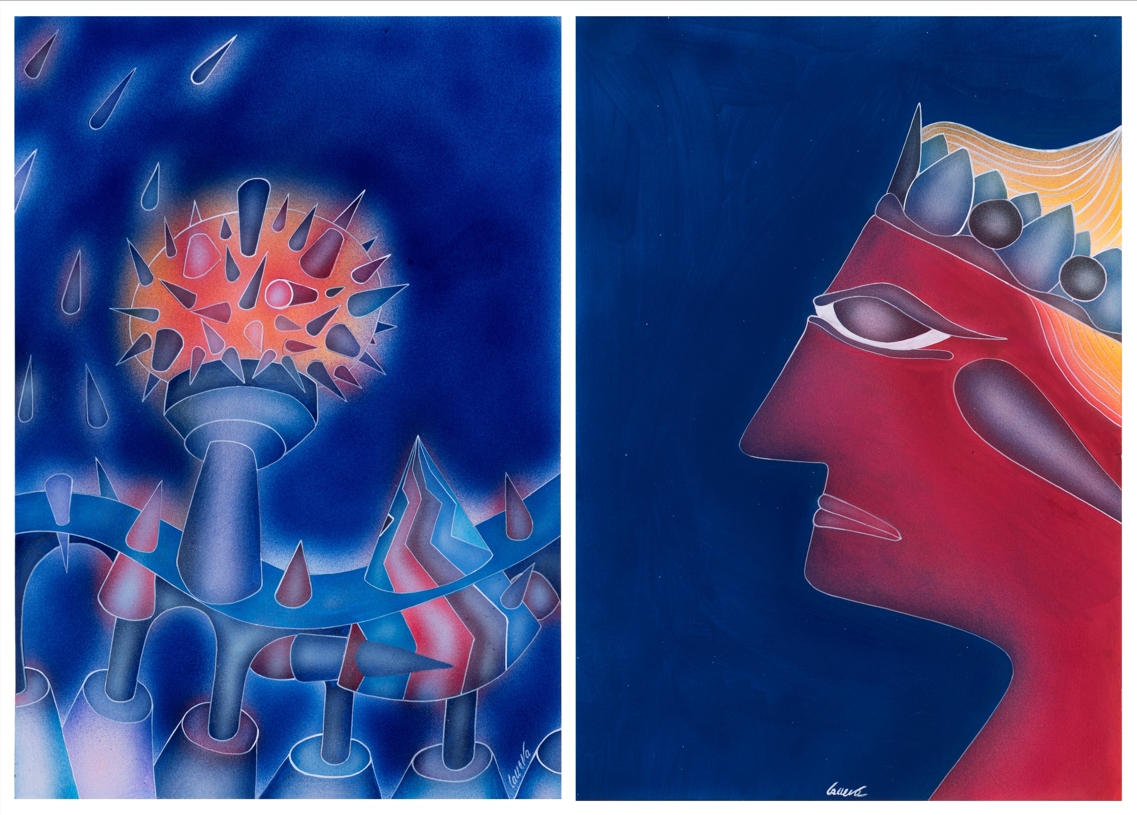 lotto di 2 tecniche miste su carta, cm. 50x35 cad.