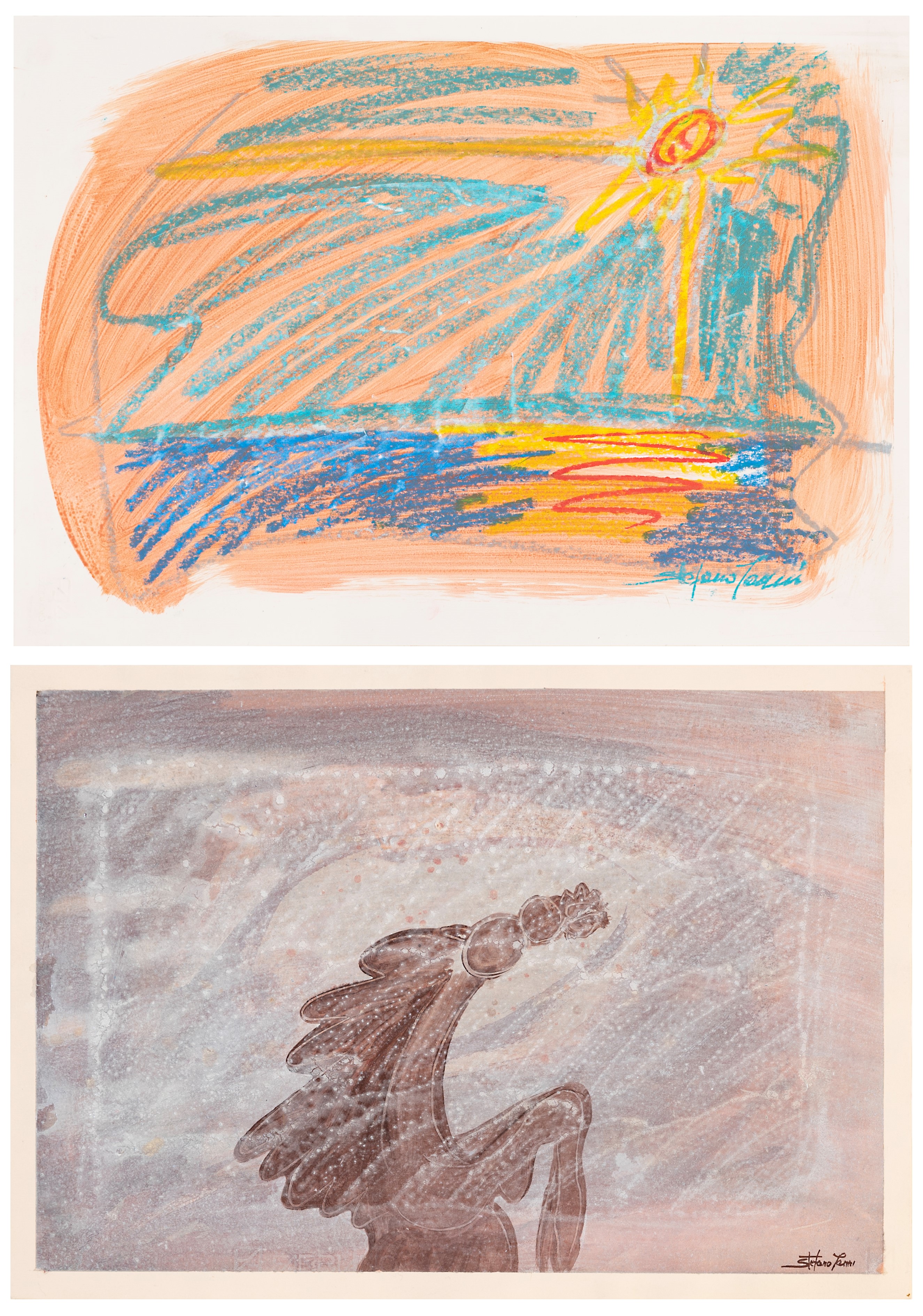 lotto di 2 tecniche miste su carta, cm. 32x47 cad.