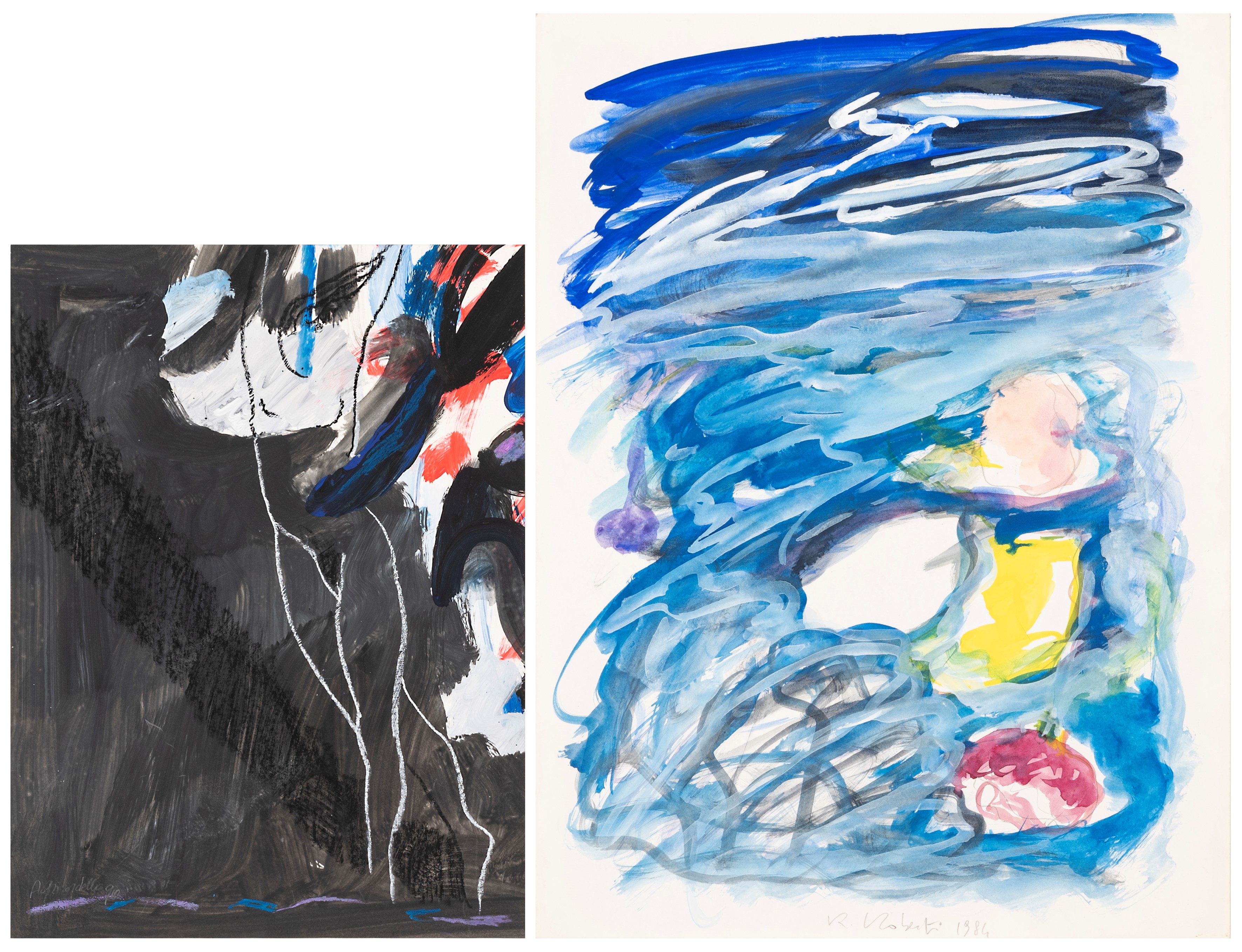 lotto di 2 tecniche miste su carta, cm. 32x43 - 52x42