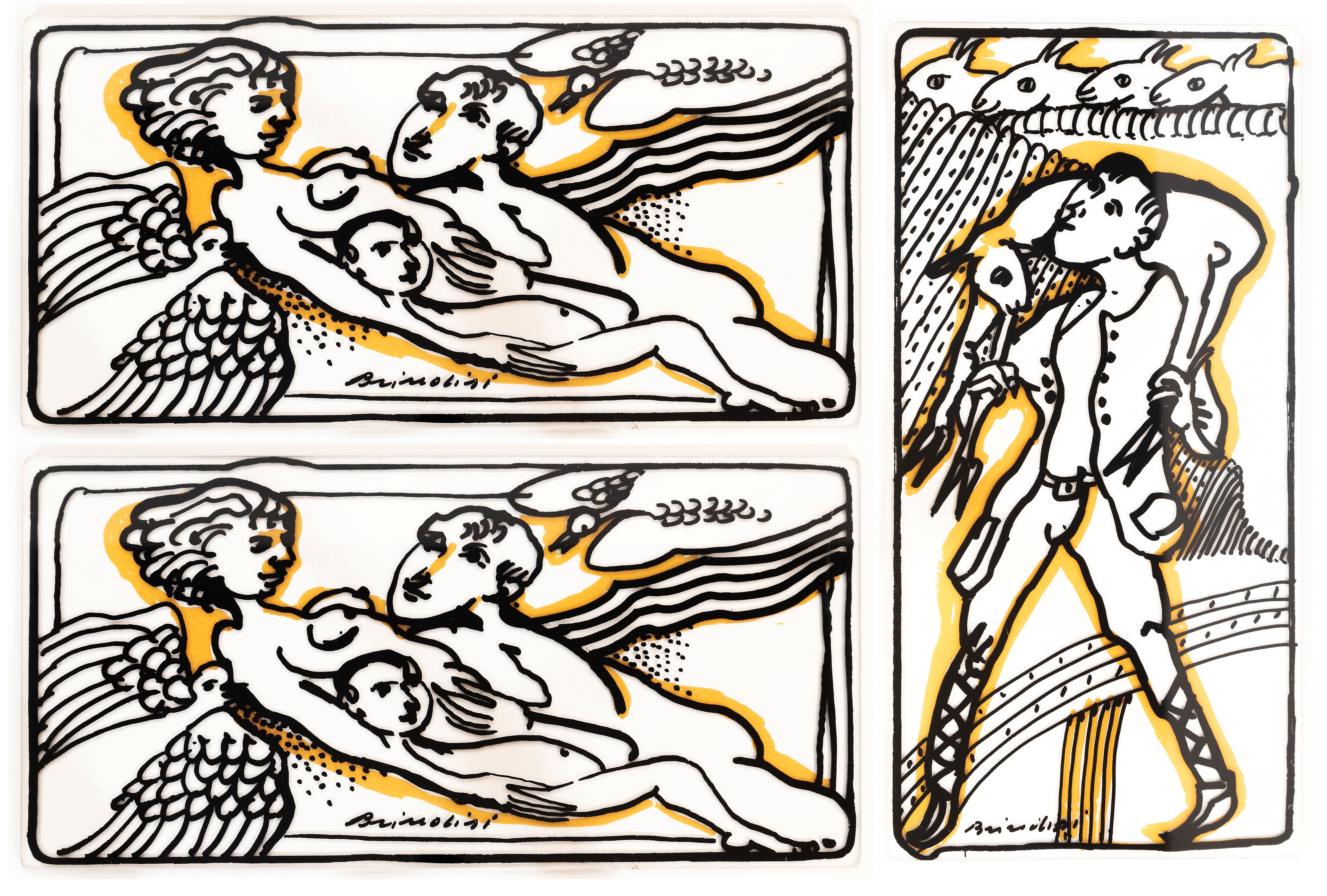 lotto di 3 tecniche miste su plexiglass, cm. 20x40 cad.