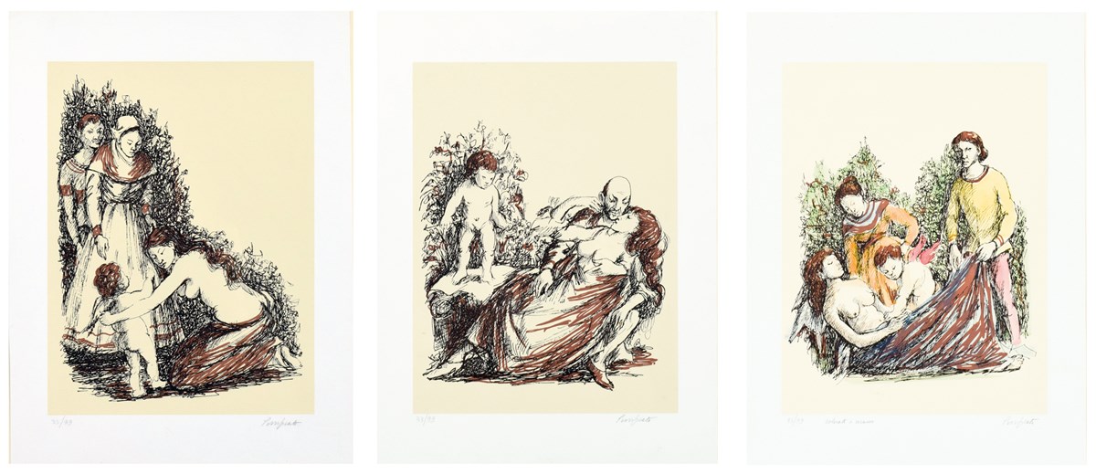 lotto di 3 litografie es. 33/99, cm. 42x32 cad.