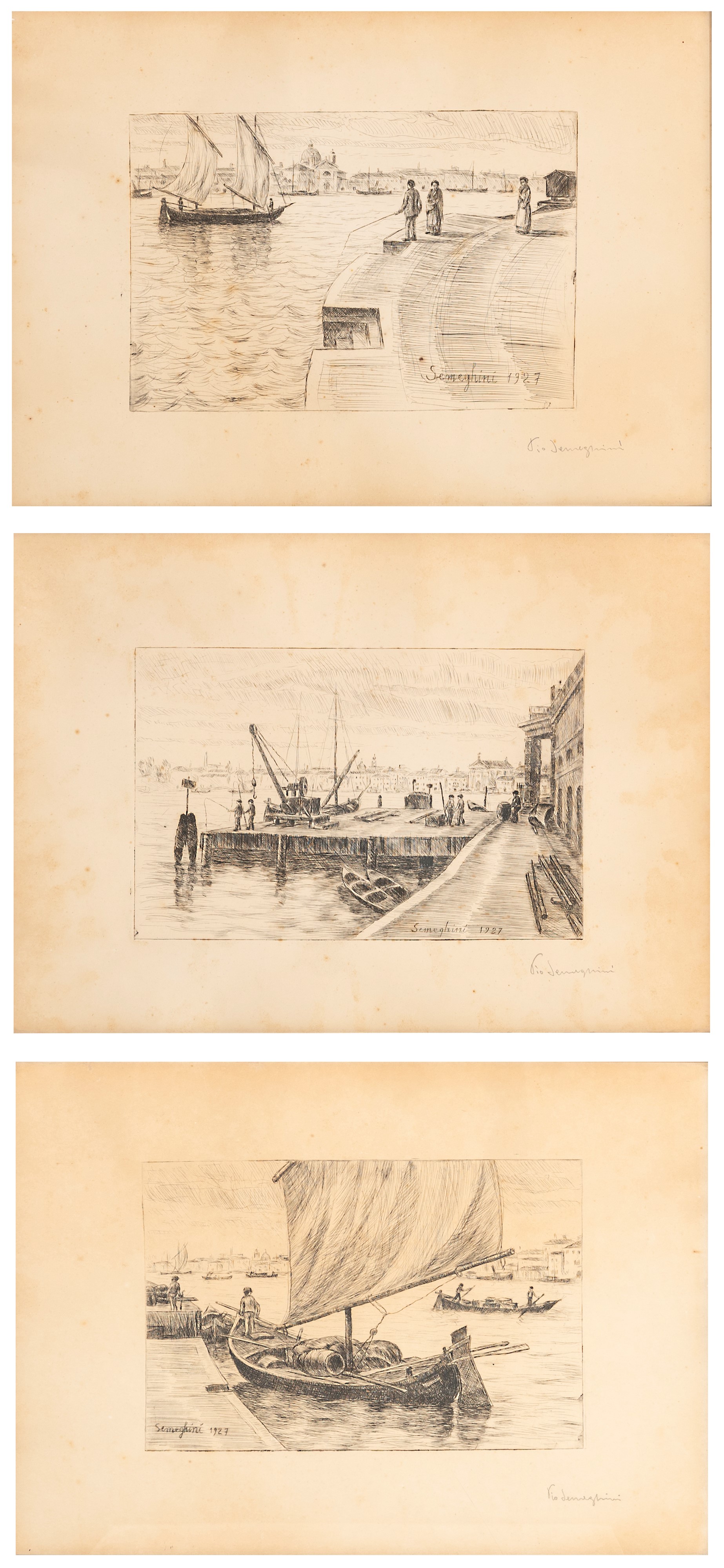 lotto di 3 acqueforti, cm. 20x30 (lastre)