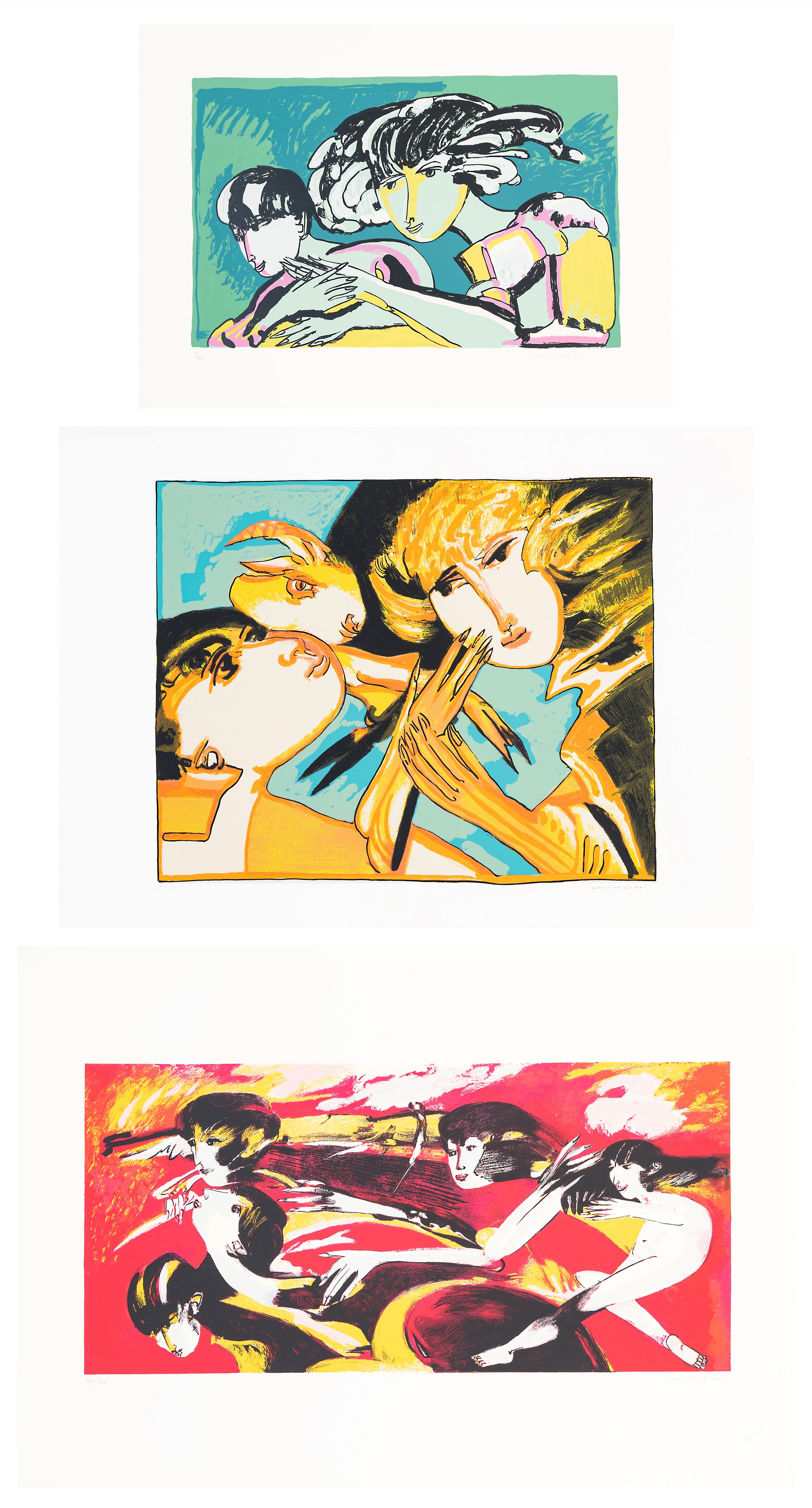 lotto di 3 serigrafie, cm. 50x70 - 90x70 - 70x100