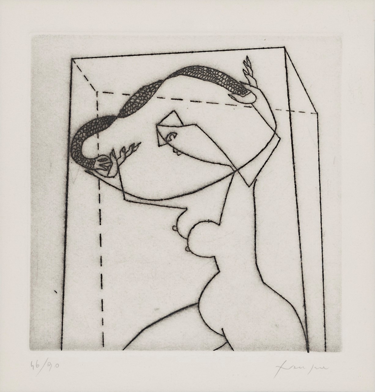 lotto di 2 acqueforti es. p.a. - 46/90, cm. 16x16 cad.