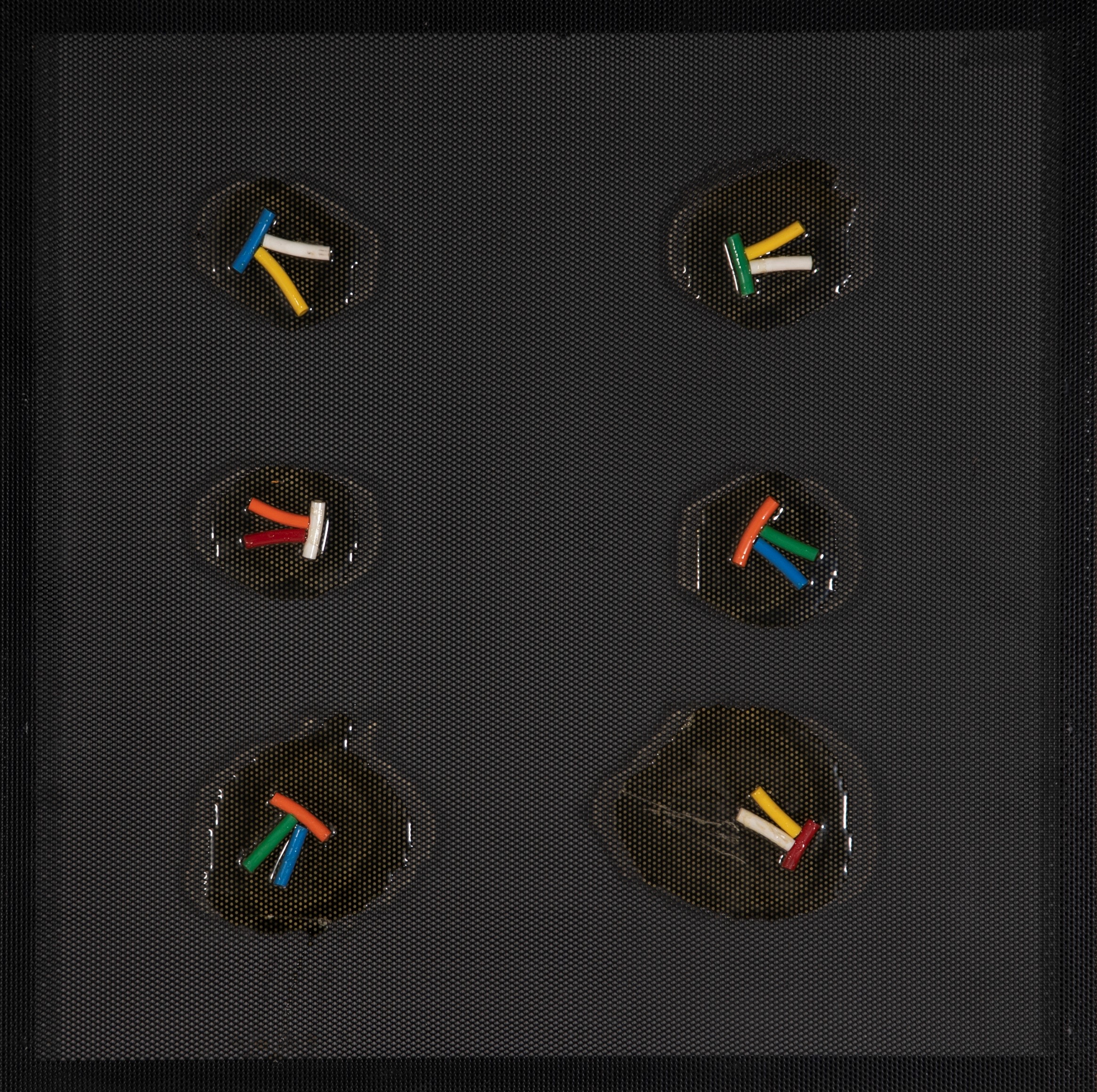 tecnica mista con applicazioni su griglia di ferro, cm. 48,5x48,5