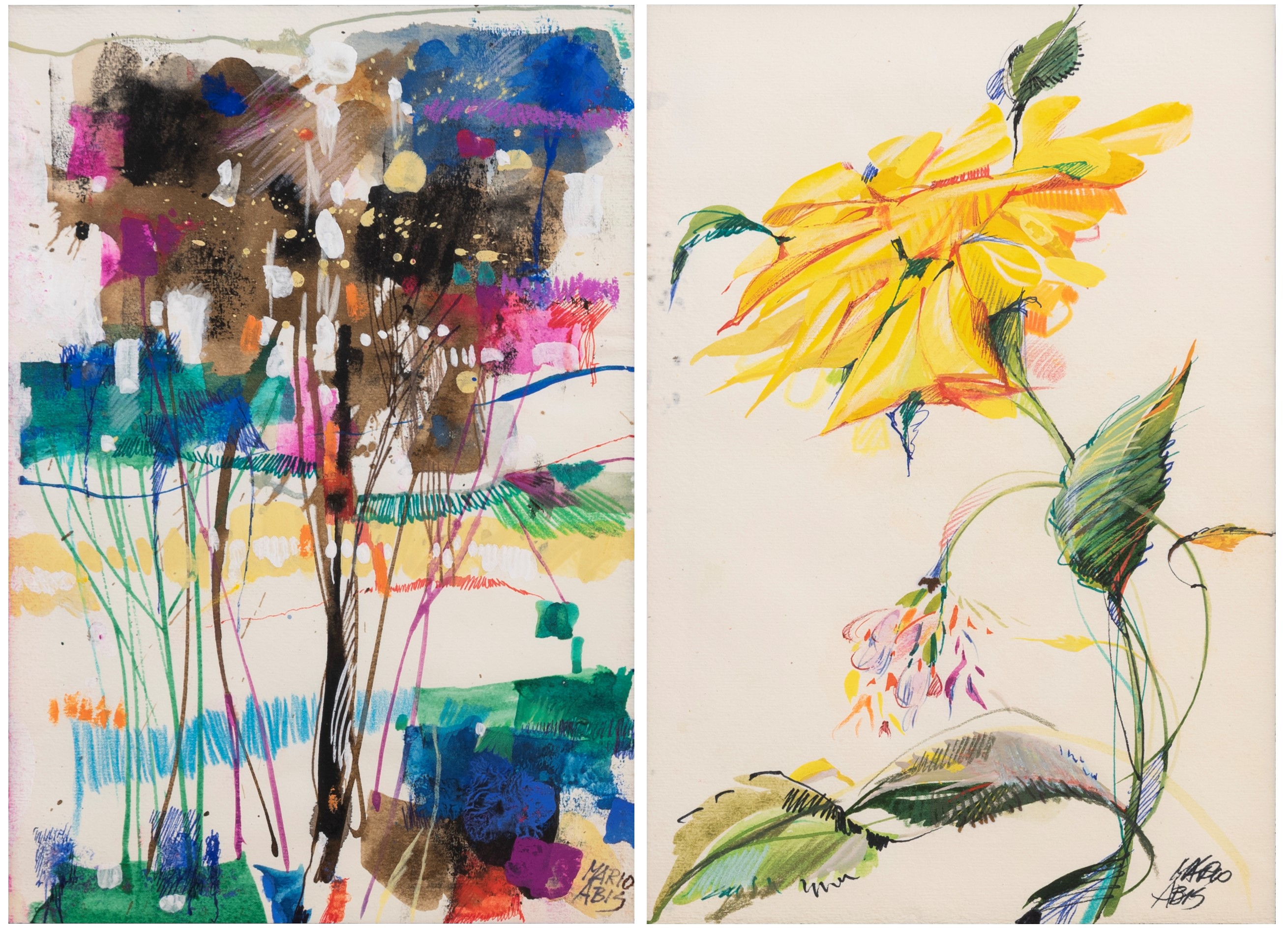 lotto di 2 tecniche miste su carta, cm. 25x17 cad.