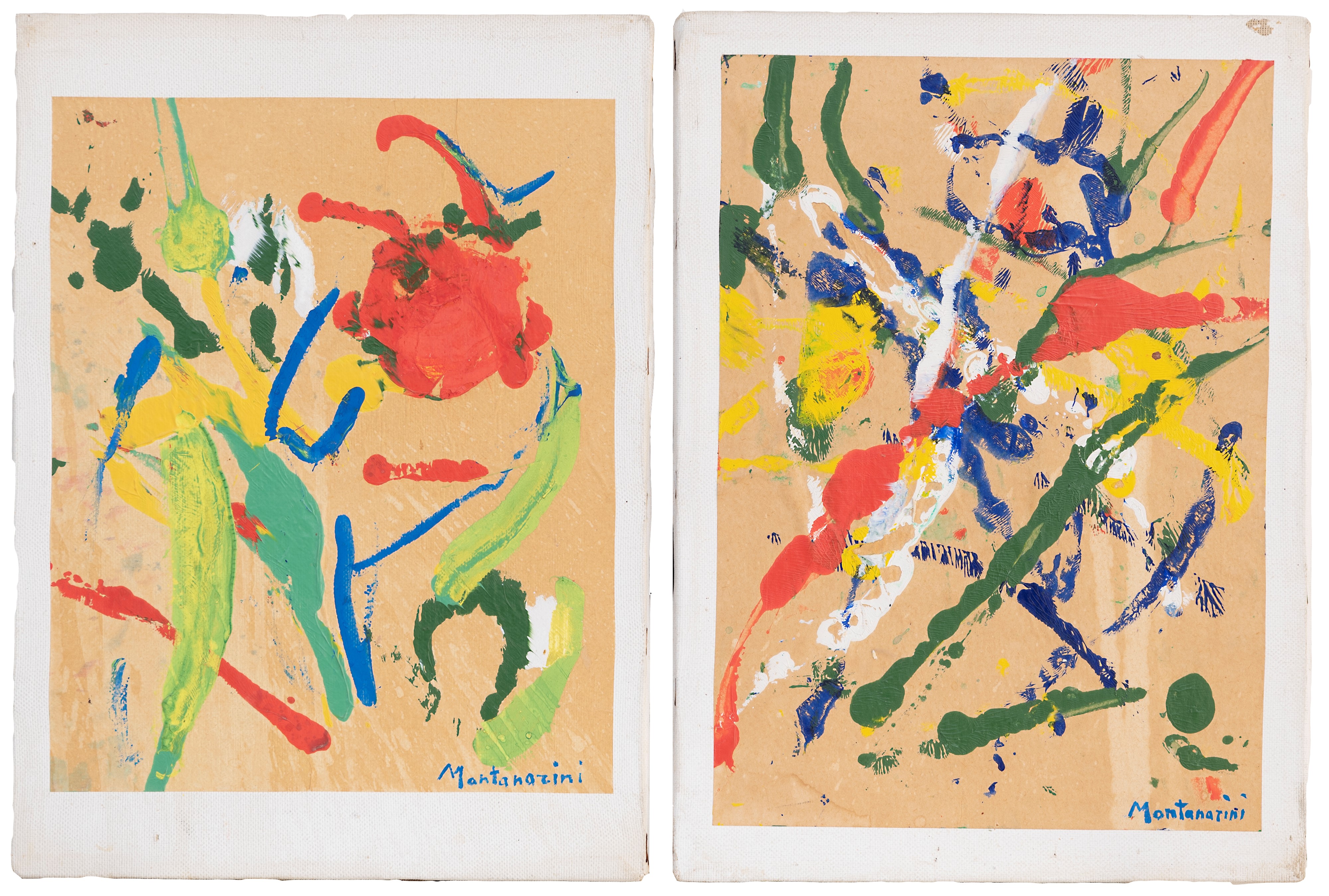 lotto di 2 tecniche miste su carta intelata, cm. 31x22 cad.