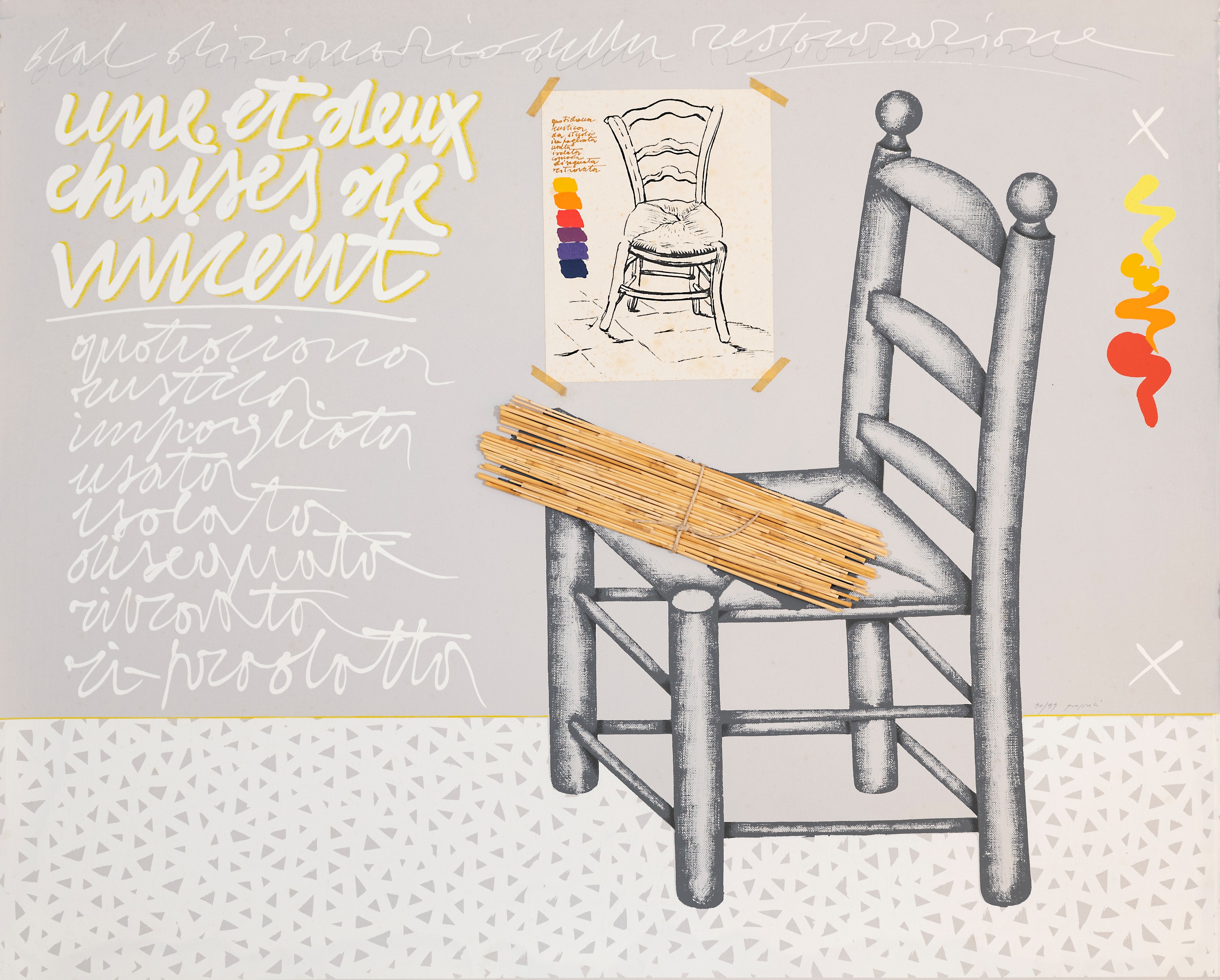 serigrafia con applicazioni su cartoncino es. 90/99, cm. 100x125