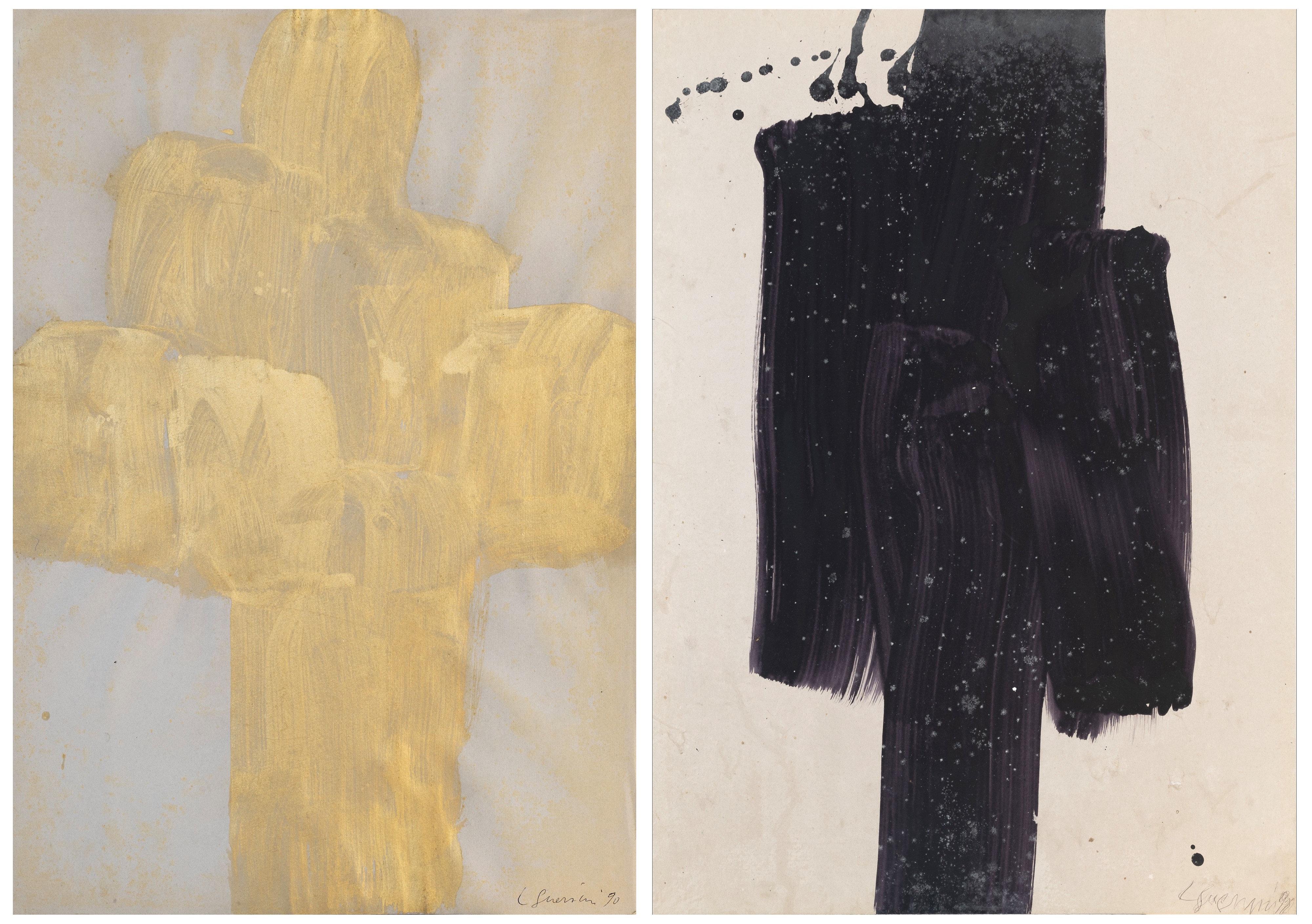 lotto di 2 tecniche miste su cartoncino, cm.100x70 cad.