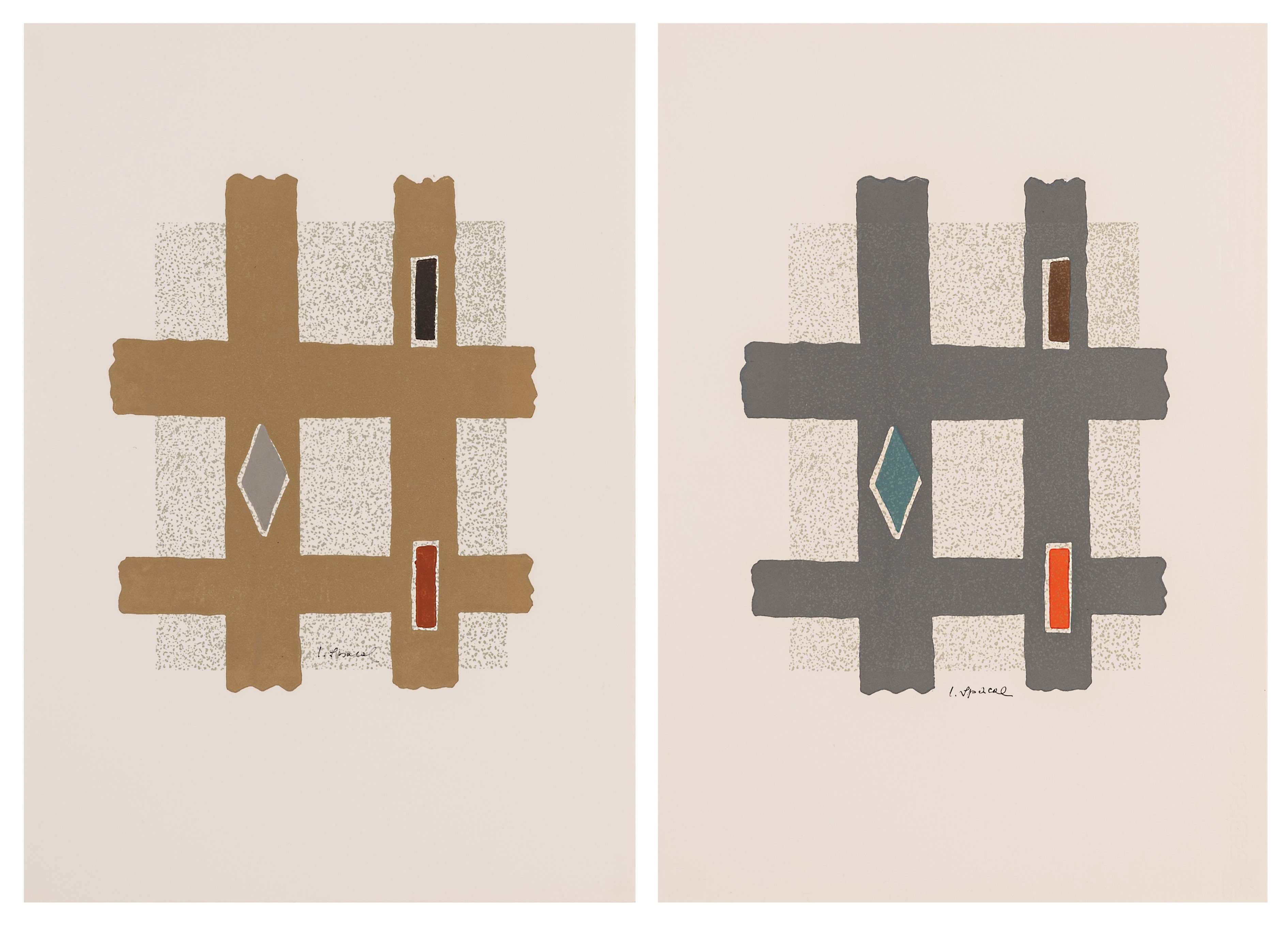 lotto di 2 tecniche miste su carta, cm. 50x35 cad.