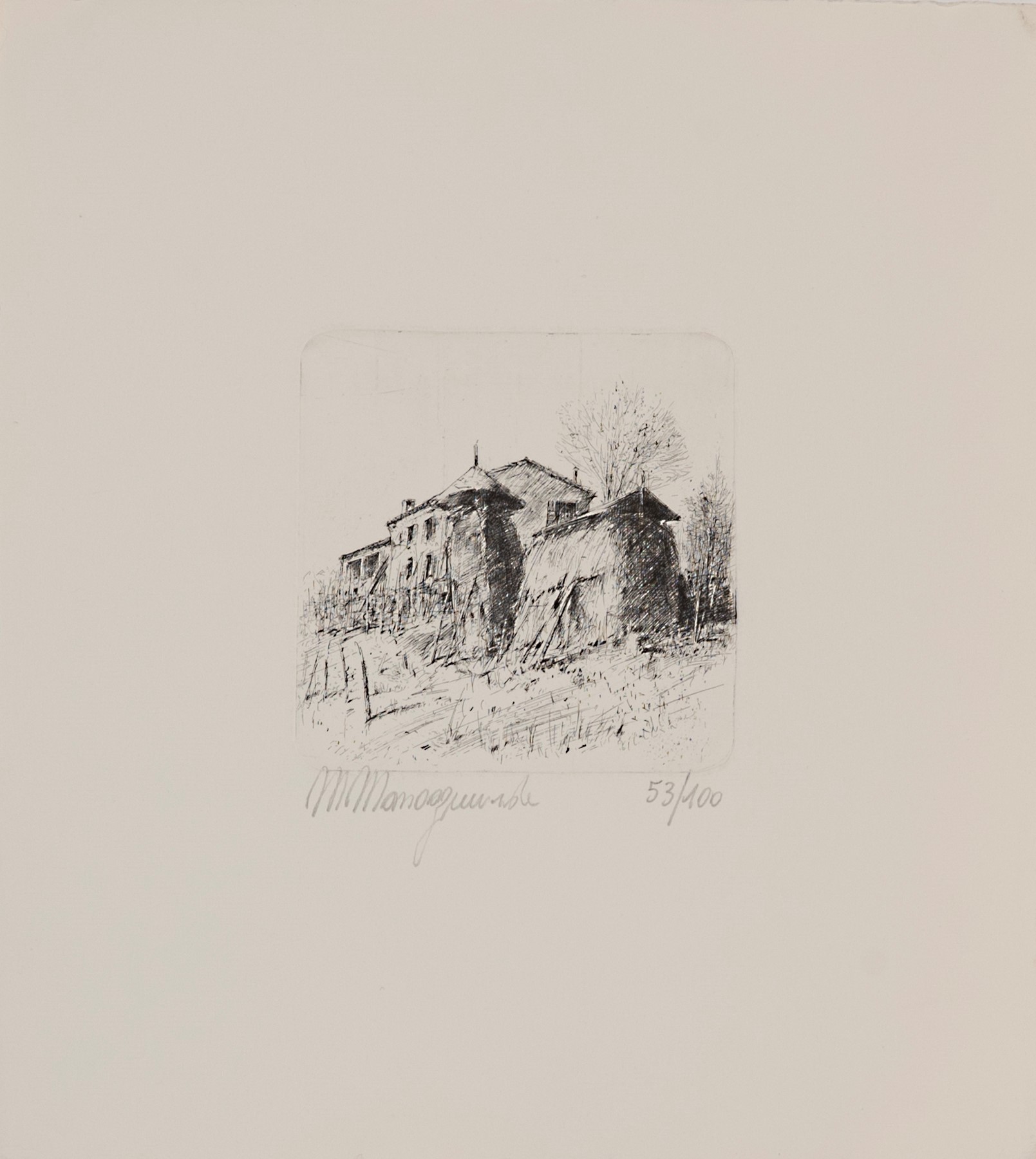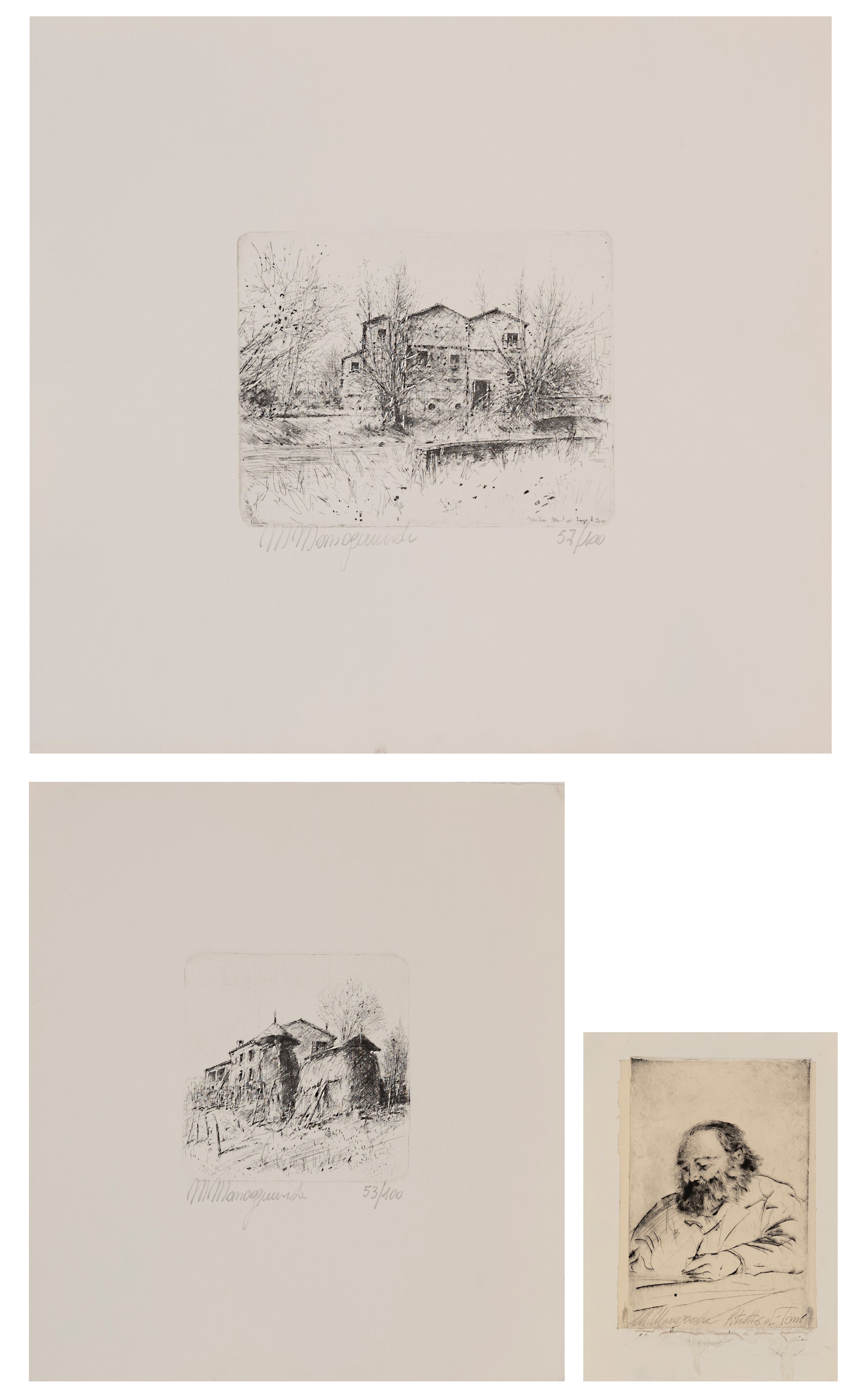lotto di 3 acqueforti es. 57/100 - 53/100, cm. 49x53,5 - 39x35,5 - 23x17