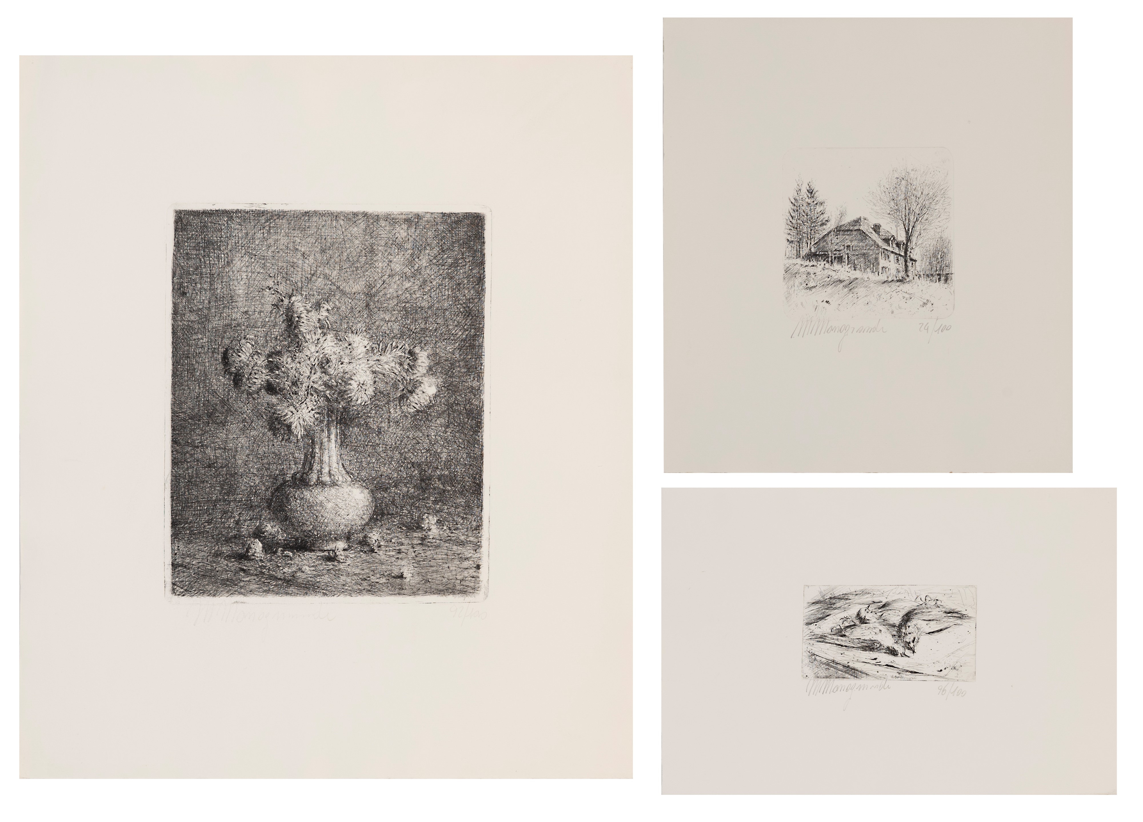 lotto di 3 acqueforti es. 92/100 - 24/100 - 96/100, cm. 62,5x52,5 - 40x35,5 - 27x40