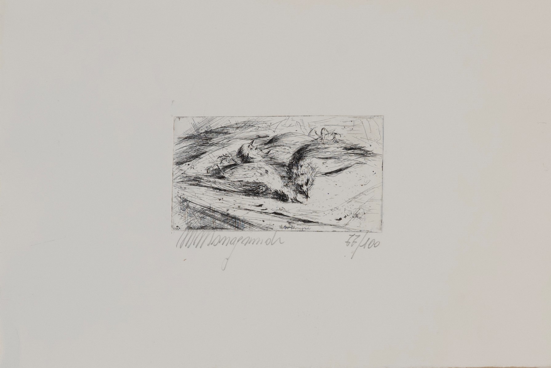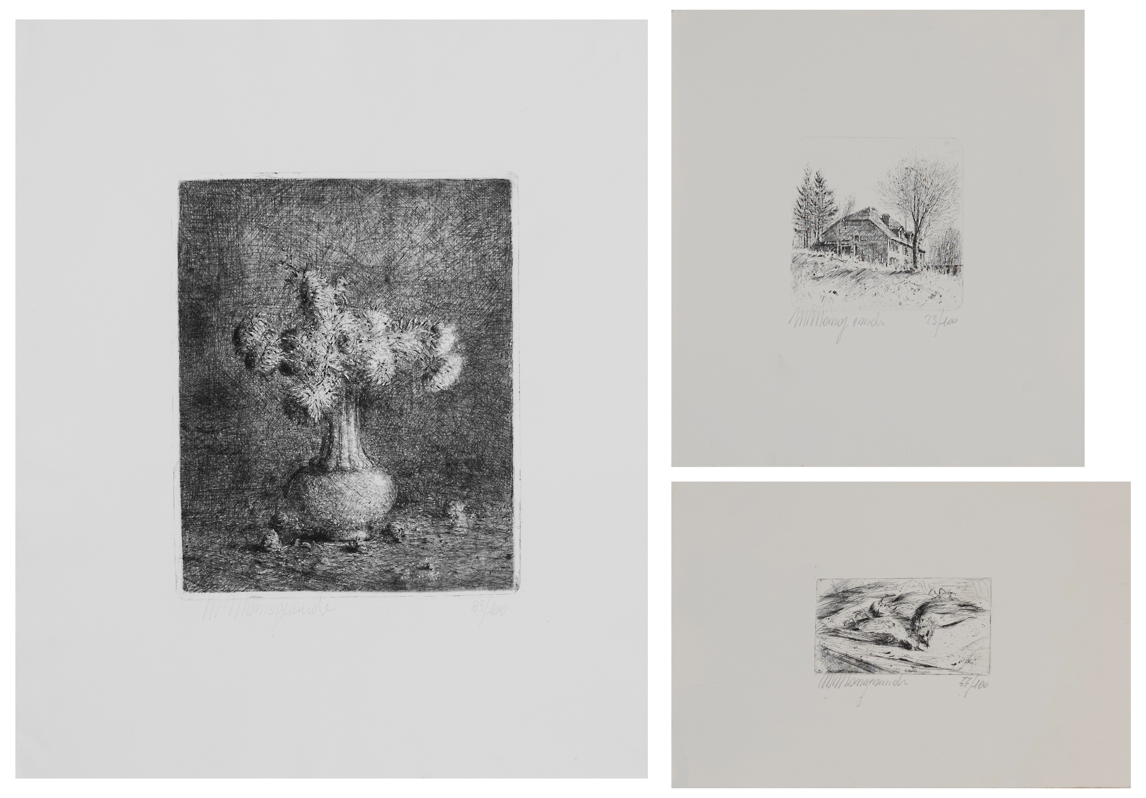 lotto di 3 acqueforti es. 85/100 - 23/100 - 77/100, cm. 62,5x53 - 39,5x36 - 26,5x39,5