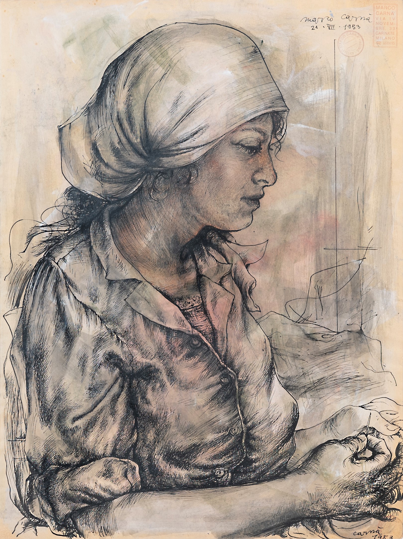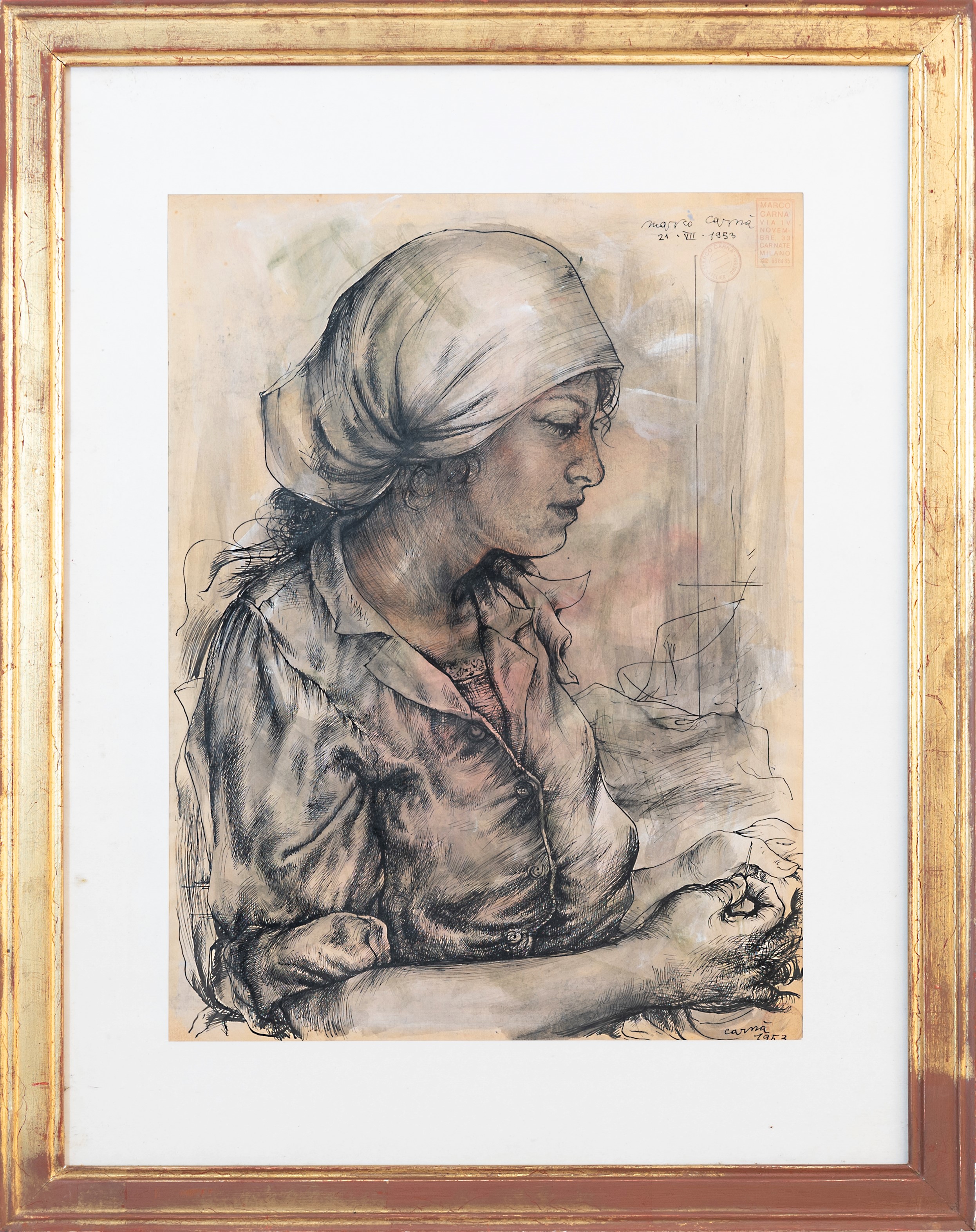 lotto di 2 tecniche miste su carta, cm. 50x38 - 19x15