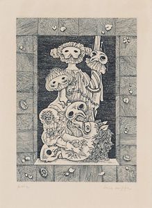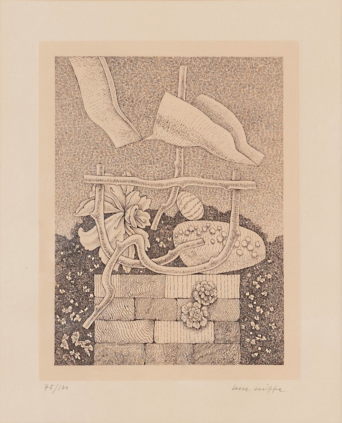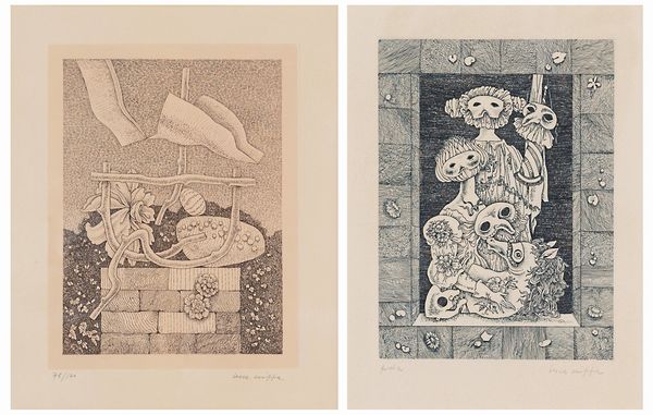 lotto di 2 acqueforti es. 75/100 e p.d.a., cm. 23x18 (lastre) cad.