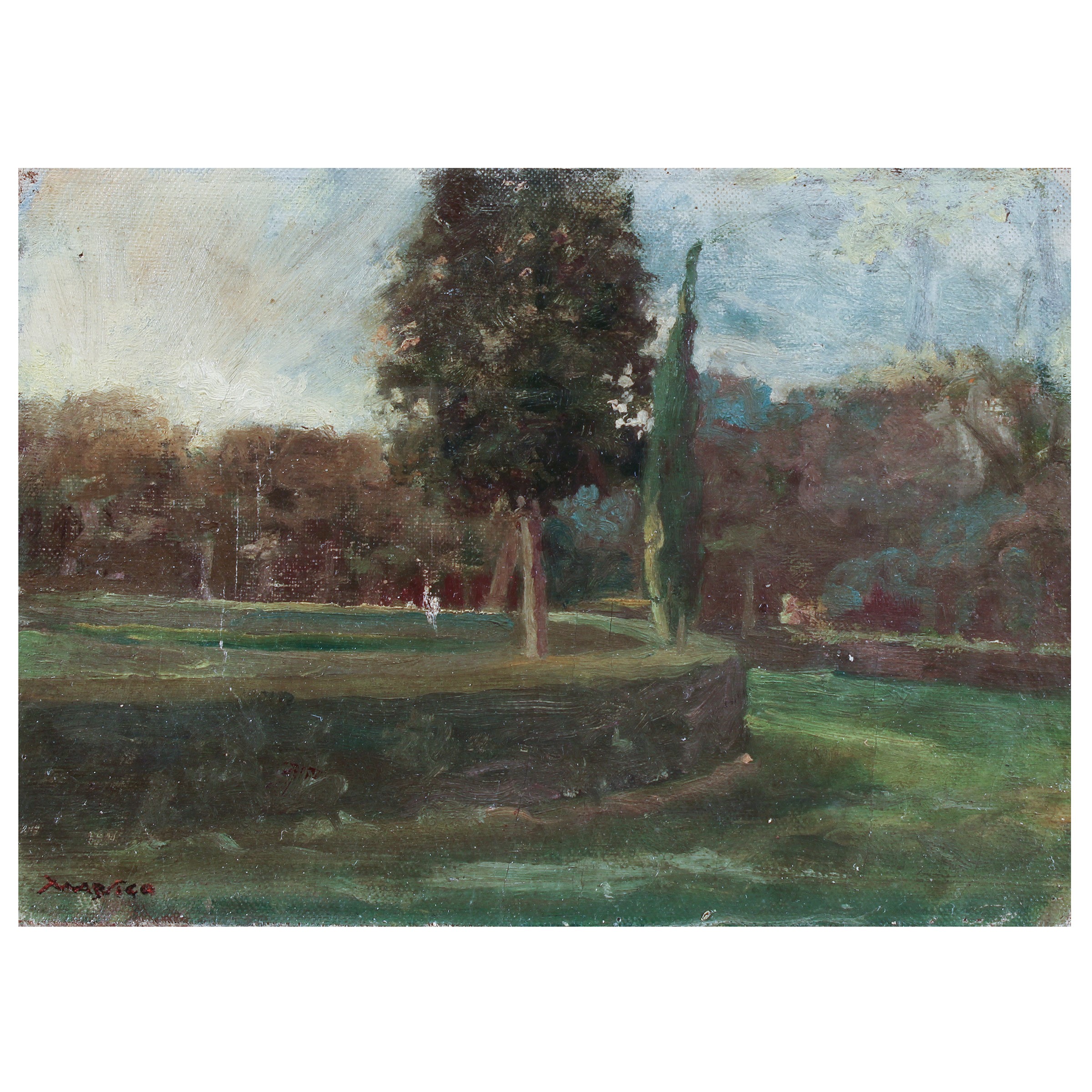 Italia, XX Veduta di parco, olio su cartoncino telato, firmato in basso a sinistra