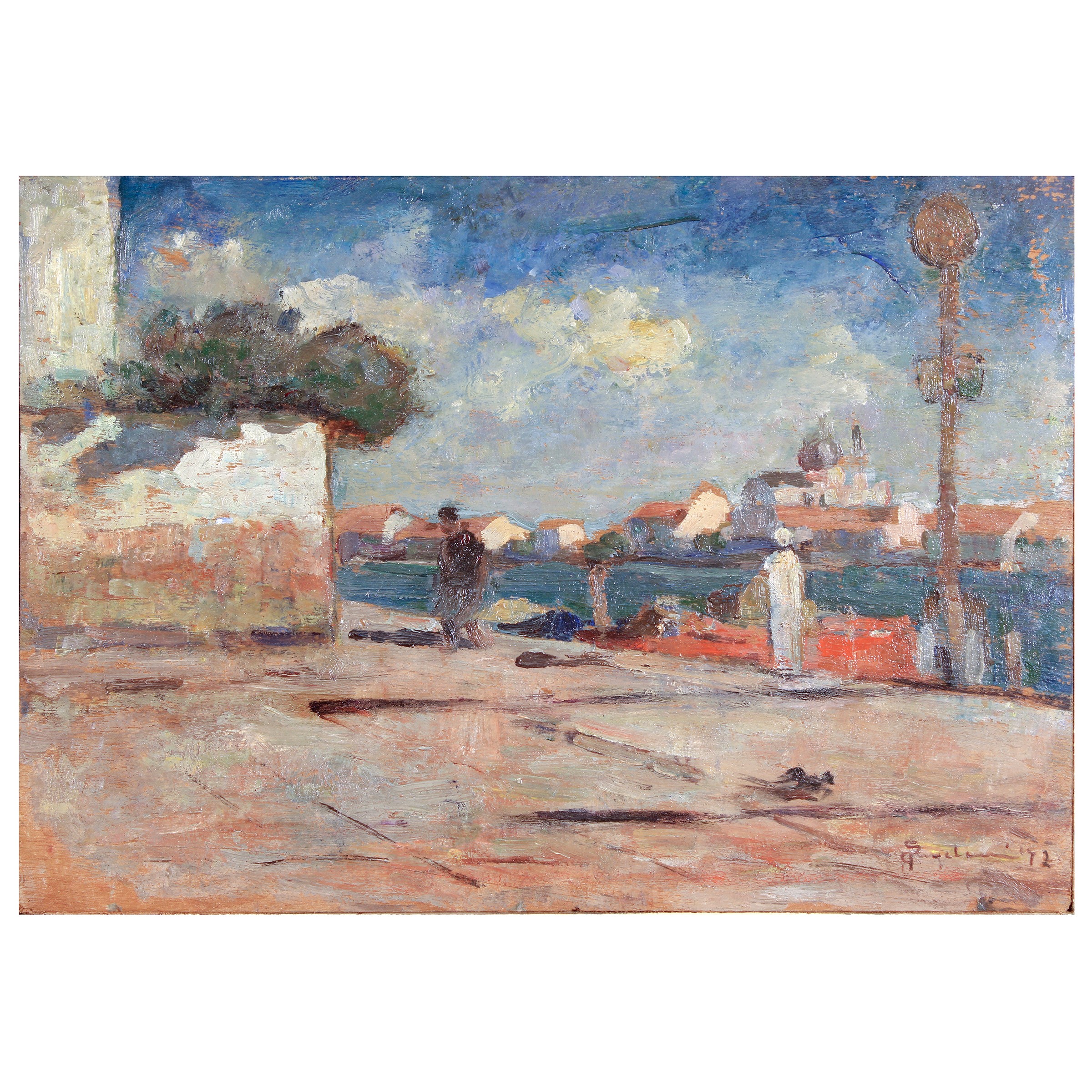 XX Sec. La Giudecca, olio su cartoncino, firmato in basso a destra