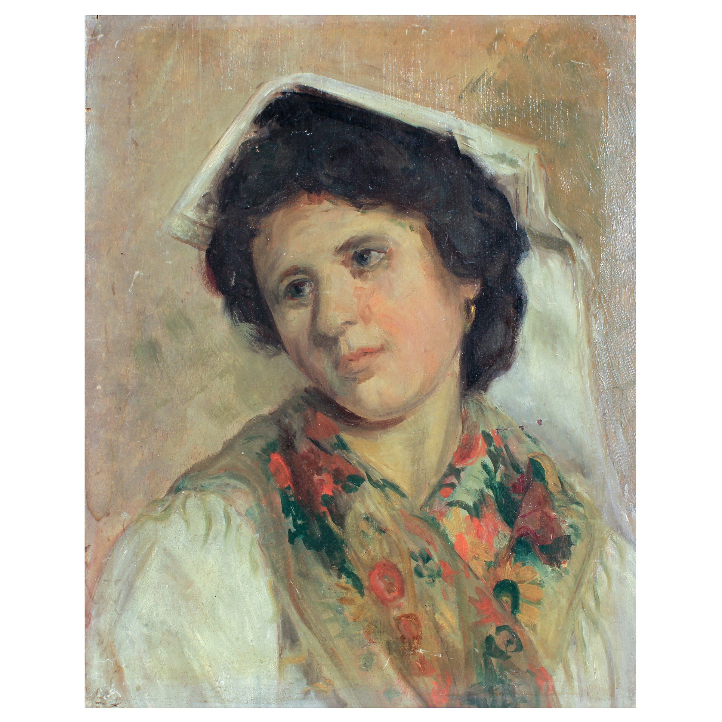 XIX-XX Sec. Ritratto femminile, olio su cartone