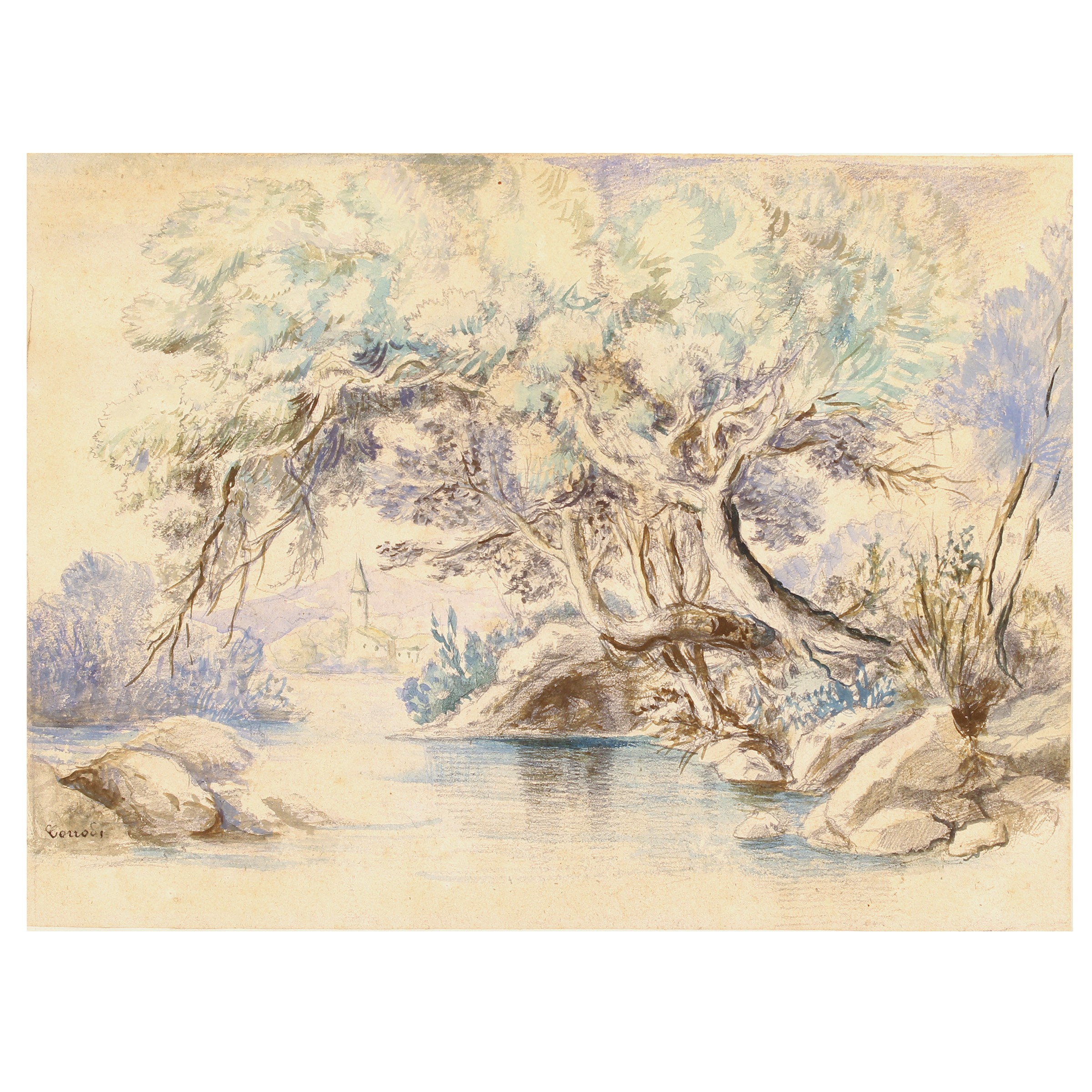 XIX - XX Sec. Veduta lacustre, acquerello su carta, reca firma Corrodi in basso a sinistra
