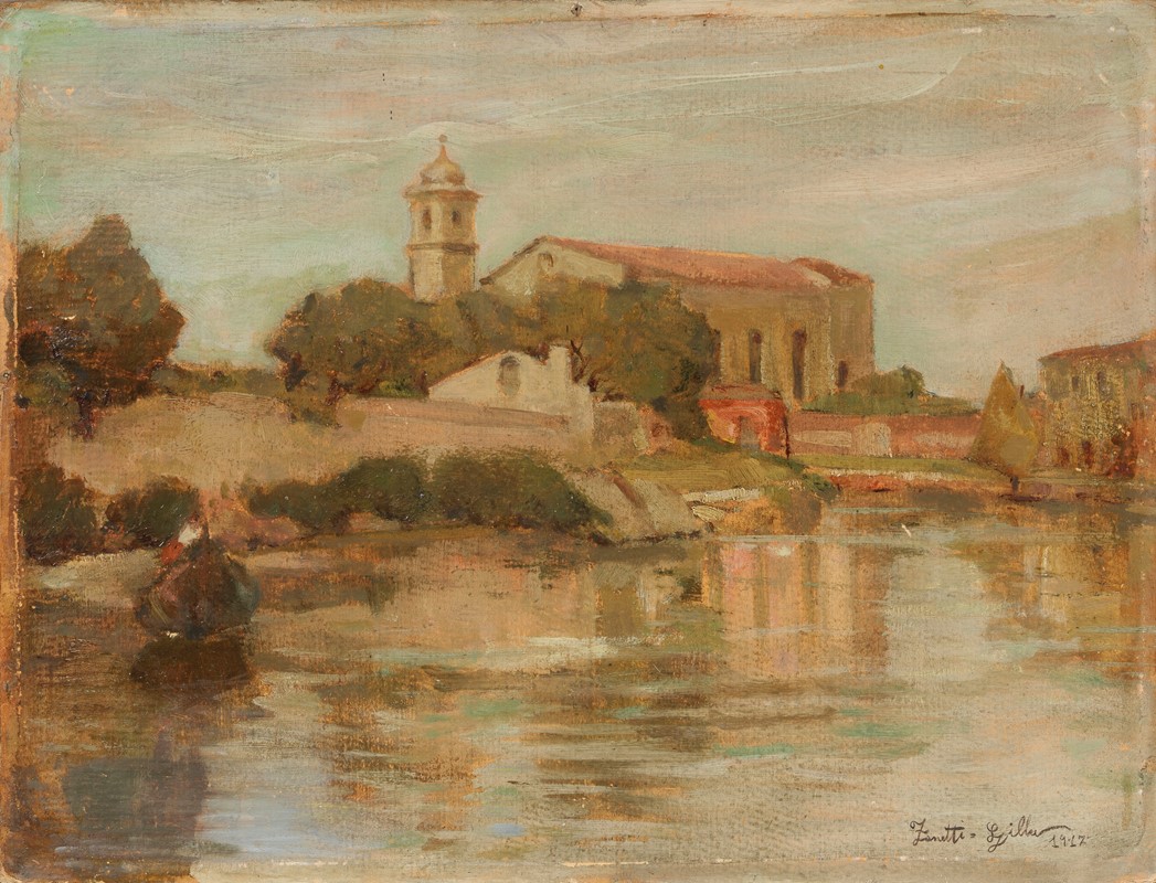 1917 Firma e data in basso a destra: Zanetti Zilla / 1917; firma, data e titolo al verso: Zanetti Zilla / 1917 / La Chiesetta degli / Angeli di Murano / (Venezia): altra composizione a olio.