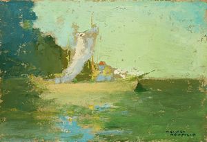 Olio su compensato, cm. 28,5x20,2 Al verso sul compensato titolo e firma parzialmente leggibile: Livorno [..]