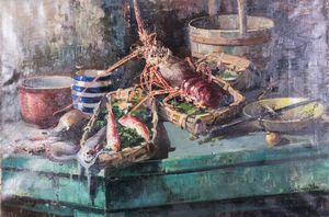 Olio su compensato, cm. 30x45 Firma in basso a destra: R. Renucci; al verso: Renucci / Livorno: etichetta e due [..]