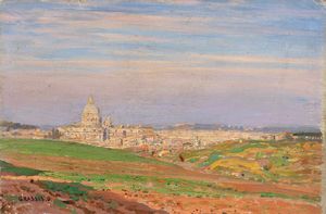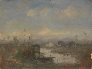 Olio su cartone, cm. 20,6x30,7 Firma in basso a sinistra: Grassis G. Scritta al verso: S. Pietro da Villa Pamp [..]