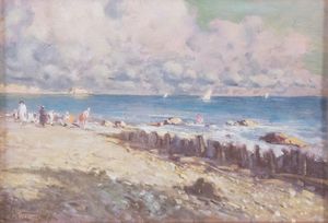 Olio su tela, cm. 64,5x104 Firma illeggibile in basso a destra.