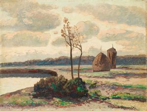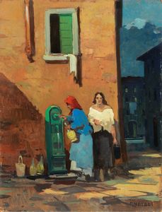 Olio su cartone, cm. 39,4x49,6 Firma in basso a destra: Privato. Al verso: etichetta Galleria d'Arte Bordin, Padova: [..]