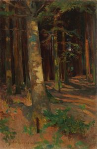 Olio su tela, cm. 40x29,8 Firma in basso a destra: R Natali; titolo e firma al verso sulla tela: Boscaiola / Renato [..]