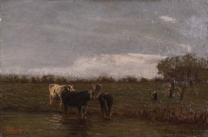 Olio su tavoletta, cm. 18,5x30 Firma in basso a destra: Adolfo Tommasi; luogo al verso: Tombolo (Livorno).