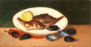 Olio su cartone, cm. 39,4x49,6 Firma in basso a destra: Privato. Al verso: etichetta Galleria d'Arte Bordin, Padova: [..]