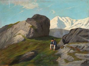 Olio su tela, cm. 46x38 Firma in basso a sinistra: D. Induno.