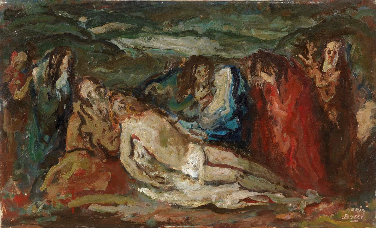 Olio su tela, cm. 39,5x65,2 (1943) Firma in basso a destra: Mario / Bucci. Al verso sulla tela: etichetta e due timbri Collezione Nazario Salti, con data 1943 e indicazione Opera Esposta: due timbri Galleria Michelangelo, Firenze; sul telaio: timbro Collezione Nazario Salti: timbro Galleria Michelangelo, Firenze.