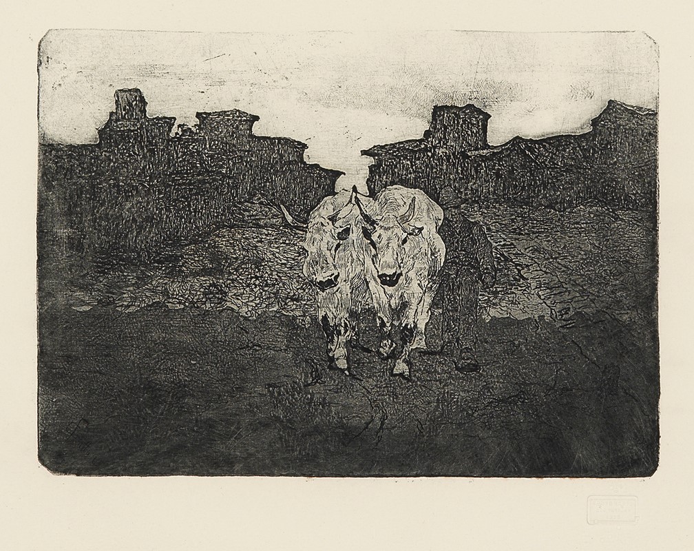 Firma in lastra in basso a sinistra: G. Fattori, in basso a destra: timbro a secco Centenario / Gio Fattori / 1925.